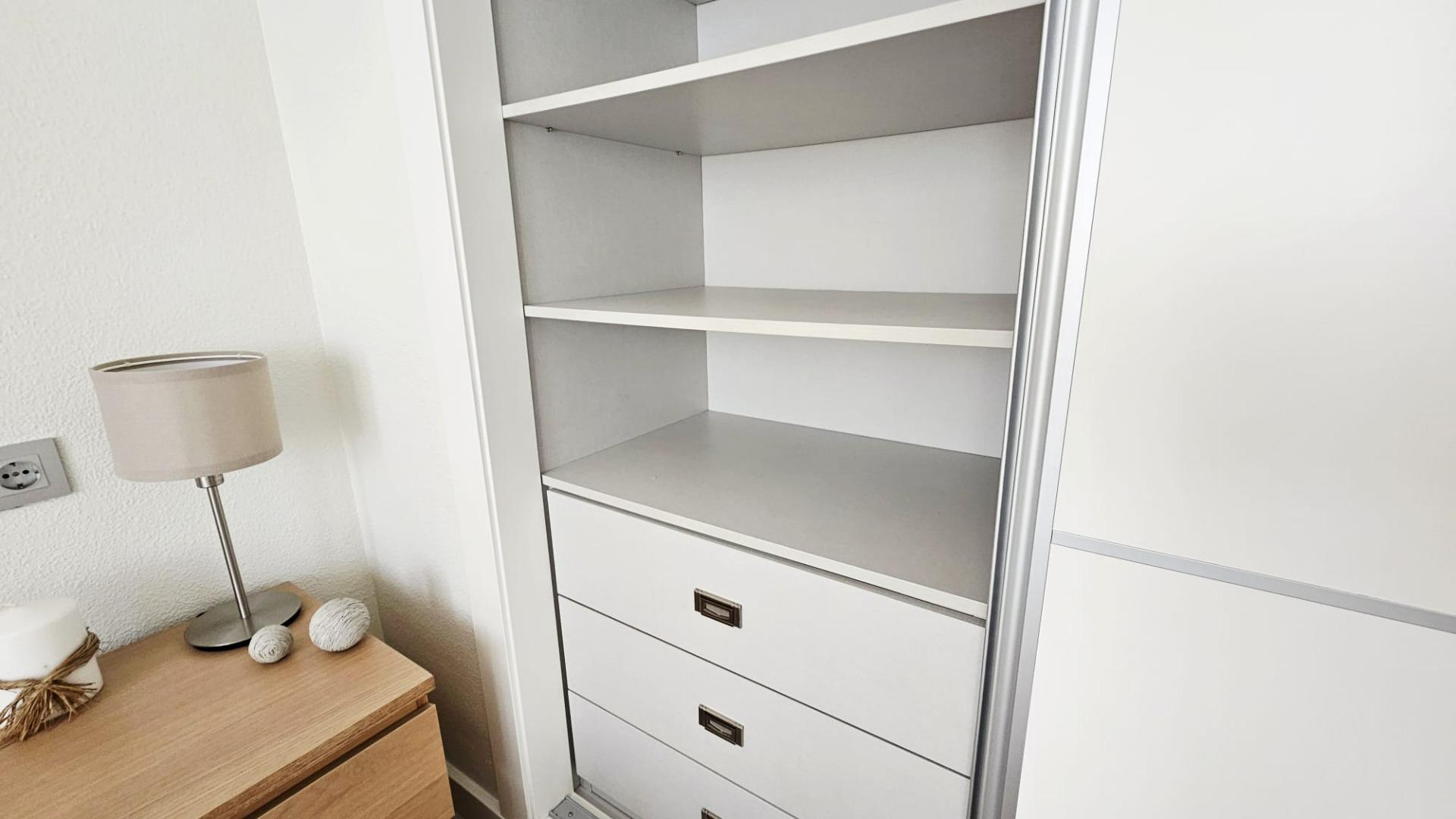 Entdecken Sie diese vollständig renovierte Eckwohnung, komplett außenliegend, mit schönem Meer- und Poolblick.~~Die Immobilie verfügt über zwei großzügige Schlafzimmer, eines davon mit neu eingebautem Kleiderschrank. Das Badezimmer wurde kürzlich renoviert. Das helle Wohn-Esszimmer öffnet sich zu einer Terrasse mit beeindruckendem Meer- und Poolblick. Die Küche ist komplett möbliert und mit Geräten ausgestattet.~~Alle Schreinerarbeiten wurden erneuert – PVC-Fenster mit Kipp- und Drehfunktion und thermischer Trennung sowie neue Innentüren. Die Eingangstür ist verstärkt und bietet maximalen Schutz. Der Boden ist mit 12 mm Laminat ausgelegt. Die gesamte Beleuchtung ist LED. Eine intelligente Klimaanlage (Kühlen/Heizen) ist installiert.~~Die Wohnung wird möbliert verkauft. Das Chaiselongue-Sofa lässt sich in ein Bett umwandeln und bietet unter den Sitzflächen viel Stauraum. Das Bett im Hauptschlafzimmer verfügt über vier Schubladen für maximalen Stauraum. Die Matratze ist neu.~~Das zweite Schlafzimmer verfügt über ein Ausziehbett mit einem zusätzlichen Bett und separaten Schubladen.~~Die Terrasse ist mit zwei neuen Markisen ausgestattet.~~Die Gemeinschaft bietet einen Pool, einen Erholungsbereich, eine Sonnenzone und einen Grillplatz, ideal zum Genießen von Mahlzeiten mit Familie und Freunden.~~Im Gebäude gibt es zwei Lagerräume zur Aufbewahrung von Strandstühlen und Liegen sowie einen Fahrradabstellplatz.~~Oben befindet sich eine Dachterrasse (Solarium), ideal zum Wäscheaufhängen oder Sonnenbaden mit herrlicher Aussicht.~~Die Wohnung liegt nur 3 Gehminuten von zwei Grundschulen und zwei weiterführenden Schulen entfernt, in der Nähe des Sportpalastes, mehrerer Supermärkte, eines Einkaufszentrums, Bars, Restaurants und eines medizinischen Zentrums. Die Gegend ist ruhig, aber mit guter Infrastruktur.~~Ob Sie eine bezugsfertige renovierte Wohnung suchen, um Sonnenaufgänge und mondbeschienene Abende zu genießen, oder eine Ferienwohnung bzw. Investition, rufen Sie an und vereinbaren Sie einen Besichtigungstermin!~~~