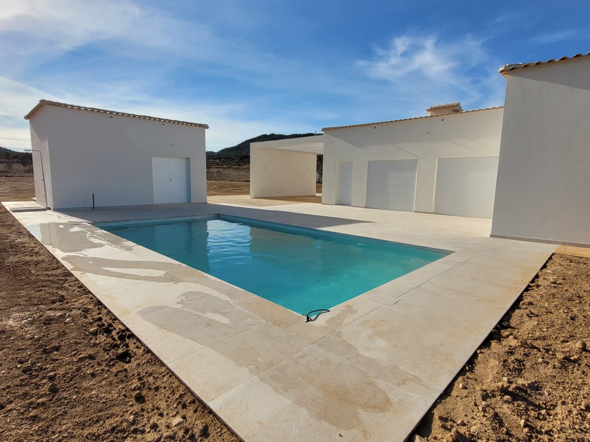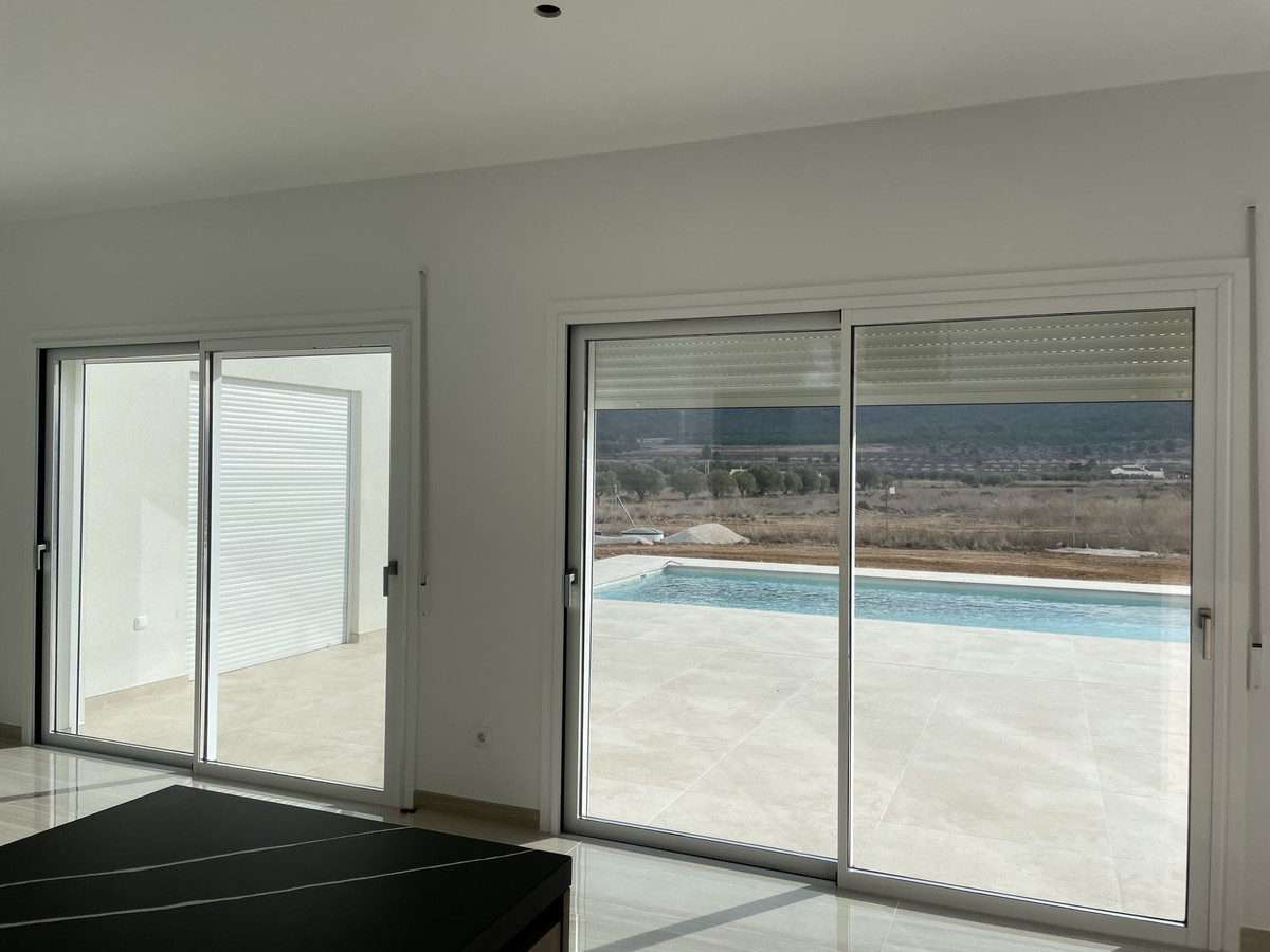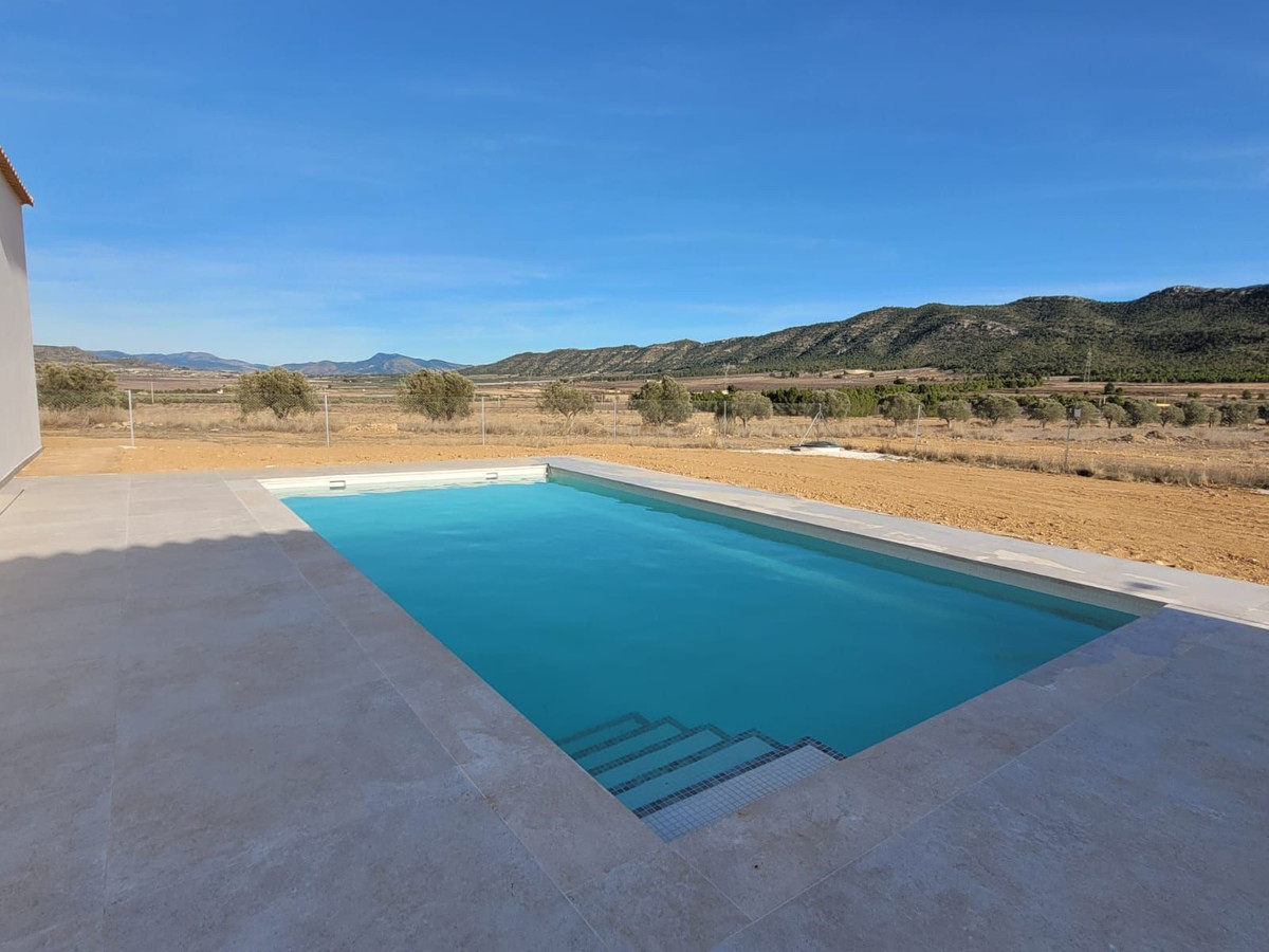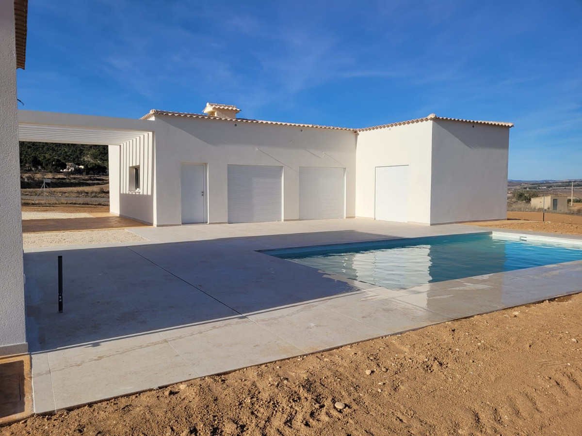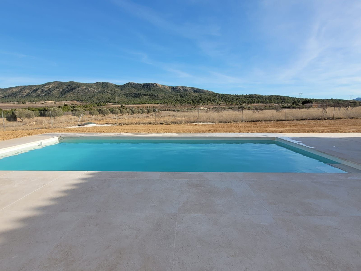 This Villa is an Exclusive Sale.Located in a very quiet area in Salinas on a spacious plot of 10,249 sqm, this beautiful low-rise 3-bedroom villa offers a true oasis of tranquility. With a southern orientation, the garden is bathed in natural sunlight, allowing you to fully enjoy the outdoor space.From the entrance hall you are welcomed into the spacious kitchen that features large windows and these provide an abundance of natural light, where you can enjoy a panoramic view of the lush garden. A practical storage room next to the kitchen provides additional storage space and room for both washer, dryer, freezer, etc.The kitchen is equipped with oven, induction stove, cooker hood, dishwasher and refrigerator. The open living area offers access to the guest toilet.On the south side overlooking the garden is the master bedroom with adjacent bathroom equipped with walk-in shower, double sink and toilet. The house also offers 2 spacious bedrooms on the north side of the house, each with an adjoining bathroom with shower, sink and toilet.Outside, a beautiful garden with heated pool invites you to relax. An outdoor storage / pool house offers additional storage space, as well as a separate toilet and an outdoor shower that emphasize the convenience and functionality of the outdoor space. General:- Detached Villa in Salinas in the middle of beautiful nature. – Salinas center at only 2 km.- Property all on one level with 139.12 m² built area on a plot of 10.249 m² of which 3000 m² fully fenced with electric gate.- Open plan living area with fully equipped kitchen, 3 bedrooms, 3 en suite bathrooms and separate guest toilet.- Spacious storage/laundry room provided. Large windows for lots of light with shutters.- Equipped with Air conditioning hot/cold in the entire house, Intercom, Wifi.-10 solar panels, energy label A.- Heated swimming pool with cover 8 x 4 meters.- Pool house with toilet and outdoor shower.~