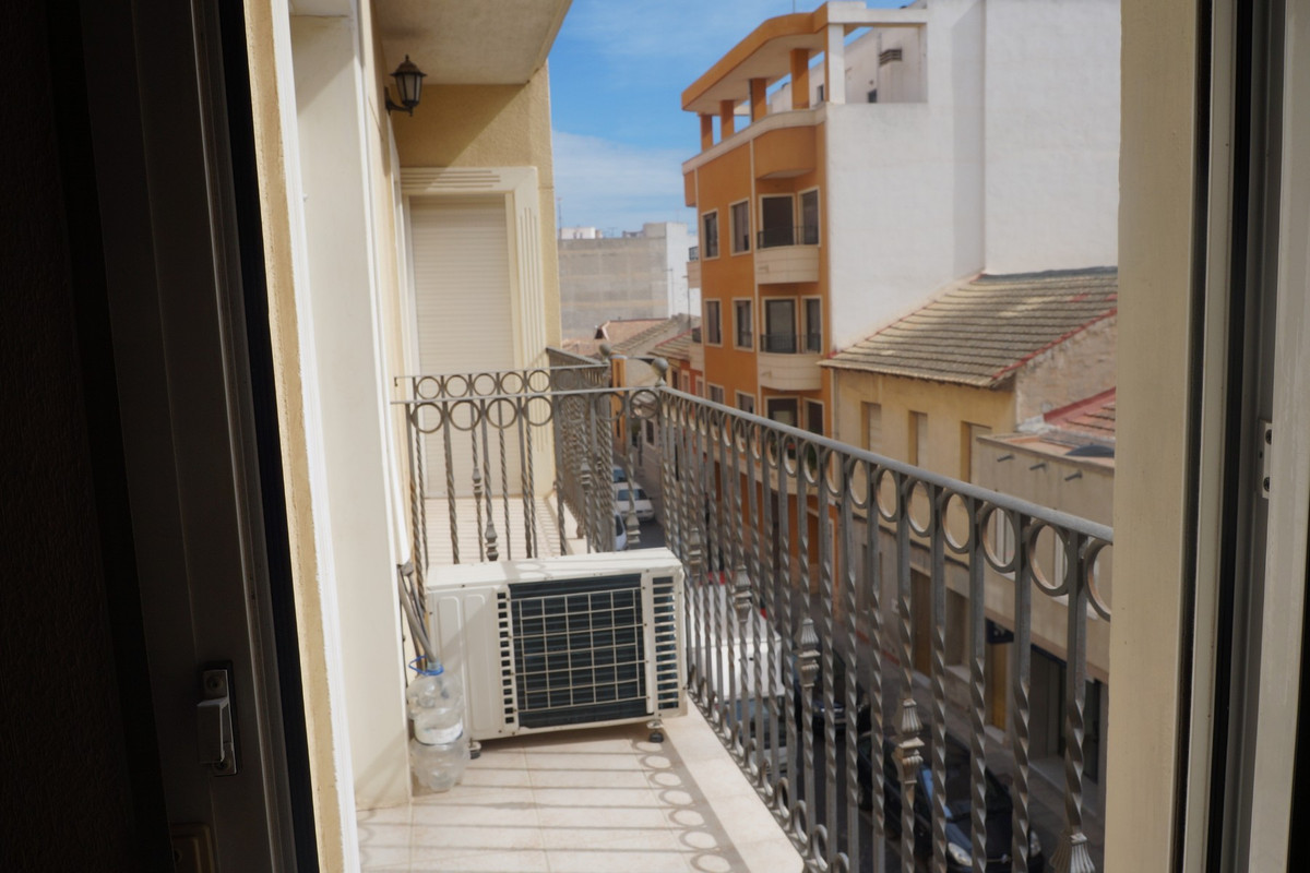 A centrally located second floor apartment being offered for sale in Almoradi.The living space of this proeprty consists of a large lounge/dining room with access to the balcony, a fully fitted kitchen with seperate utility room, three double bedrooms with fitted wardrobes and the master also has en-suite facility as wel as a family bathroom.Located right in the heart of Almoradi close to shops, bars and restaurants and only 15 min to the beach of Guardamar and approx. 40 mins to the airport of Alicante.~