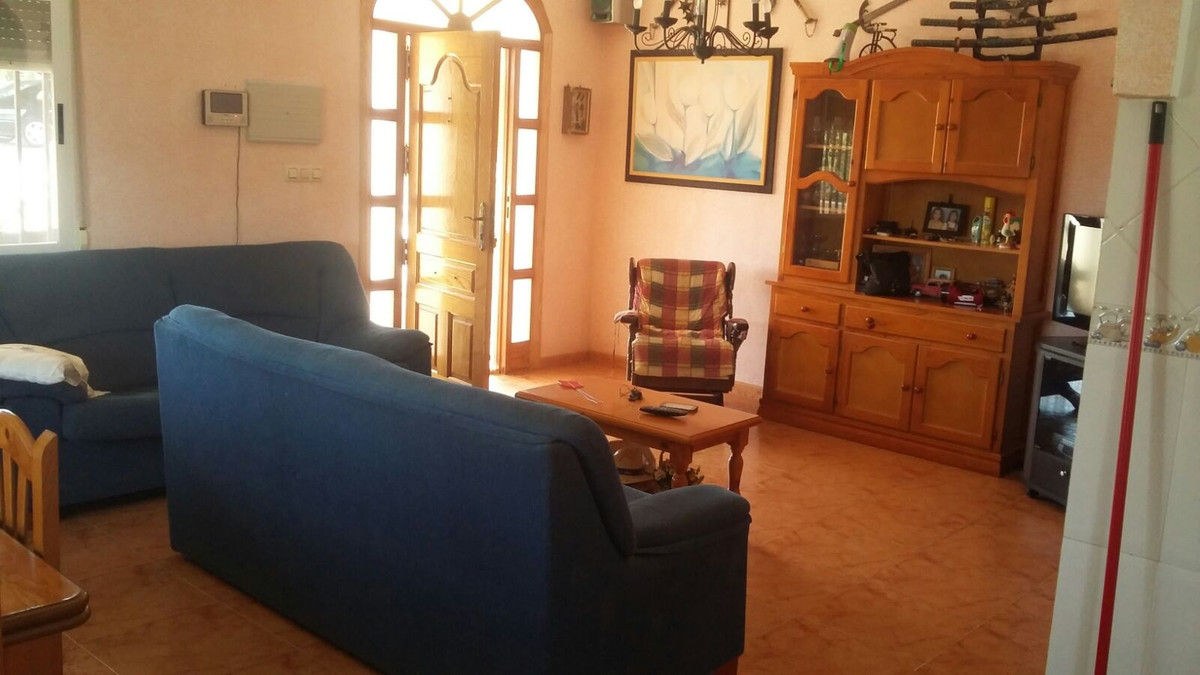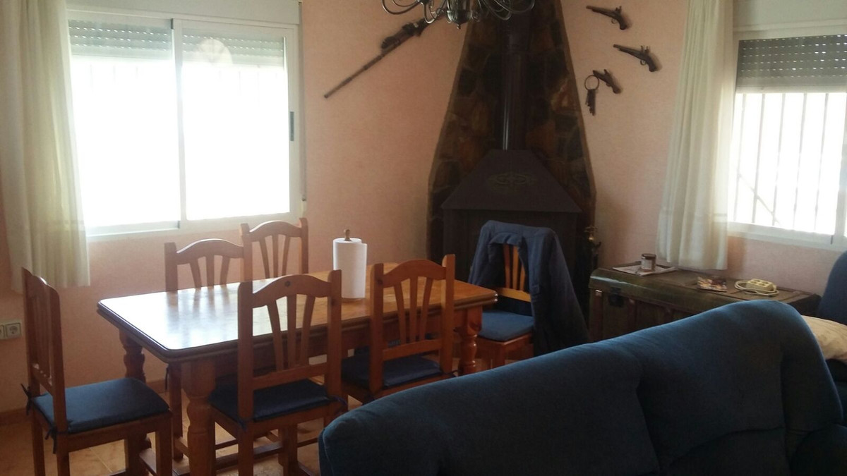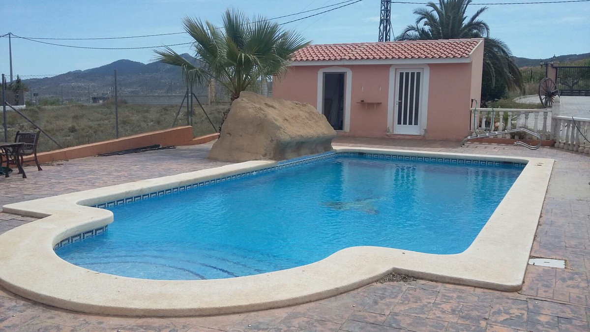 This beautiful country house is located just 1 km from Hondón de los Frailes. It stands out for its good location since it is located in a rural area, a very quiet place but close to the town, so you can enjoy the tranquility of nature, but if you need to make a purchase, go to a bar … you will have it very close.The main house has 124 meters, 3 bedrooms, 1 bathroom, living room, kitchen with utility room and larder Extras: Fireplace, heating in the rooms, furniture and white goods, electrical network, water ….Apart from the main house, there is a 100m2 warehouse, which can be used as a warehouse, a workplace, or could even be used as an annex for guests.Outside, there is a covered porch, barbecue area with a toilet, there is also a large pool of 12x5m2, with a dressing room and a toilet.The plot has 6,000m2, 1,000 of them are fenced with electric entrance gate, which is where the main house is located. There are fruit trees and shade, lighting in the garden, blind well and a water tank of 34,000L.If you have liked this property, do not hesitate to contact us to arrange a visit, we will be happy to help you!We are specialists in the Costa Blanca and Costa Calida specialising in the Alicante and Murcia Inland regions with a particular emphasis on Elda, Pinoso, Aspe, Elche and surrounding areas. We are an established, well known and trusted company that has built a solid reputation amongst buyers and sellers since we began trading in 2004. We offer a complete service with no hidden charges or surprises, starting with sourcing the property, right through to completion, and an unrivalled after sales service which includes property management, building services, and general help and advice to make your new house a home. With a portfolio of well over 1400 properties for sale, we are confident that we can help, so just let us know your preferred property, budget and location, and we will do the rest.~