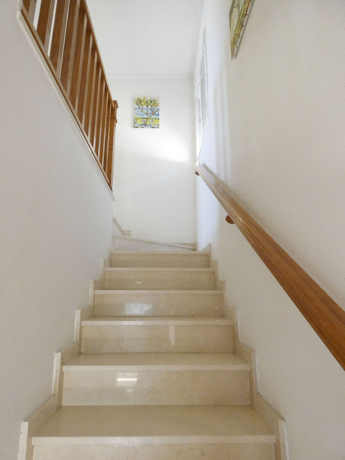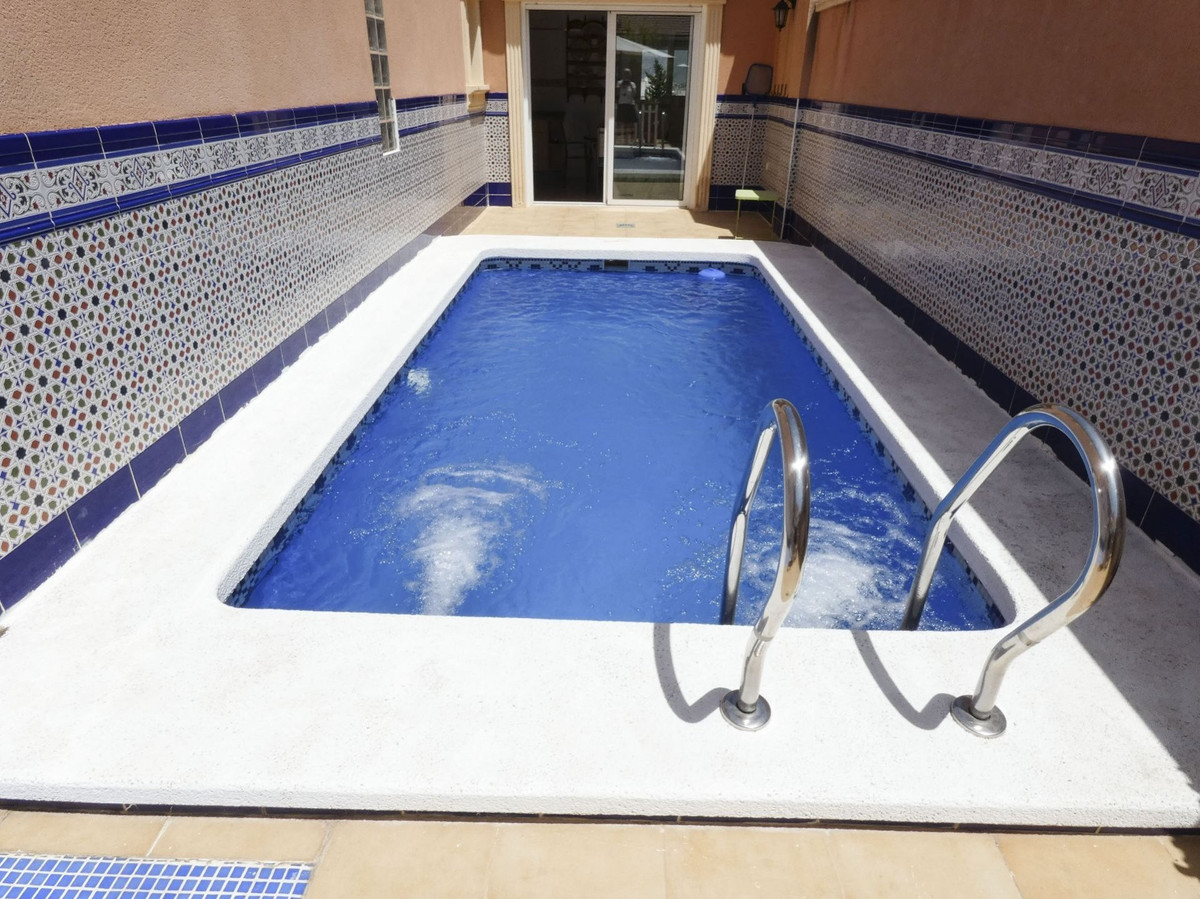 Here you will find a fantastic corner house in the heart of Bigastro, a typical Spanish village close to several major cities, the airport and the beach.You are welcomed by a private terrace with green plants. On this front to the south is the dining area with barbecue and the pool.When you enter the house there is a small hall, a spacious living room with dining room, a large kitchen with a separate utility room (balcony), a large bedroom with two beds and built-in wardrobes, a storage room and a bathroom with a shower. From the kitchen there are large glass sections so you can go directly out into the pool.Upstairs you will find a very large bedroom with a double bed. In a hallway towards the private bathroom there are several wardrobes. Very luxurious. On this floor there are also two more bedrooms, one with its own balcony and a shared bathroom with bathtub. All bedrooms have built-in wardrobes.In the large basement, which is 110 square meters, you can choose whether you want to park several cars or have it as a hobby room, cozy corner or furnish for more rooms. Here there is a very cozy bathroom (which is newly built and to be legalized) as well as a laundry room and a pool room.The entire house is very tastefully, stylishly and modernly furnished. Extra advantages are underfloor heating in the middle floor, pre-installed integrated air conditioning and the house is built with a view to being able to put in an elevator. These rooms are today the storage room on floors one and two.This villa is located right in the centre of Bigastro with only a few minutes to shops and restaurants, a small playground and the town hall. Orihuela town is only 10 minutes away by car, the coast is 25 minutes away by car and golf enthusiasts can choose from the numerous golf courses around, eg Vistabella Golf which is only 15 minutes away.Welcome to this wonderful home!~