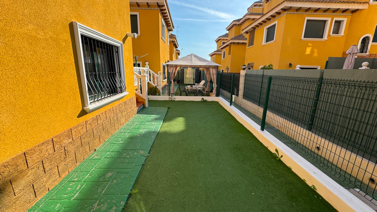 This property is set on a small development on the edge of Lo Marabu, a desirable suburb of ciudad Quesada. You can walk to many bars, restaurants and supermarkets along with being close to the main road to Torrevieja, Guardamar and the AP7 motorway.amp;nbsp;The property comes with a good sized living and dining area, kitchen with plenty of work space, cupboards, built in oven/hob and extractor along with a useful utility area.amp;nbsp;All bedrooms are of a good size with built in wardrobes, one being on the ground floor. Also on the ground floor is a useful shower room. Stairs take you down to a large under build which could be used for a variety of purposes. An extra bedroom maybe? Games room, craft room or maybe a home office or small business.amp;nbsp;Upstairs there are further bedrooms, again double in size along with fitted wardrobes. A door takes you out onto a terrace, perfect for coffee in the morning.amp;nbsp;There is also a further staircase up to a private solarium with room for sunbeds.amp;nbsp;Outside there are low maintenance gardens, a driveway and separate access to the under build/apartment.amp;nbsp;Residents also have the use of a large communal area featuring child and adult pool along with showers and shady areas.amp;nbsp;The property sold as seen with installation for air conditioning in the bedrooms andamp;nbsp;double glazed windows throughout.~
