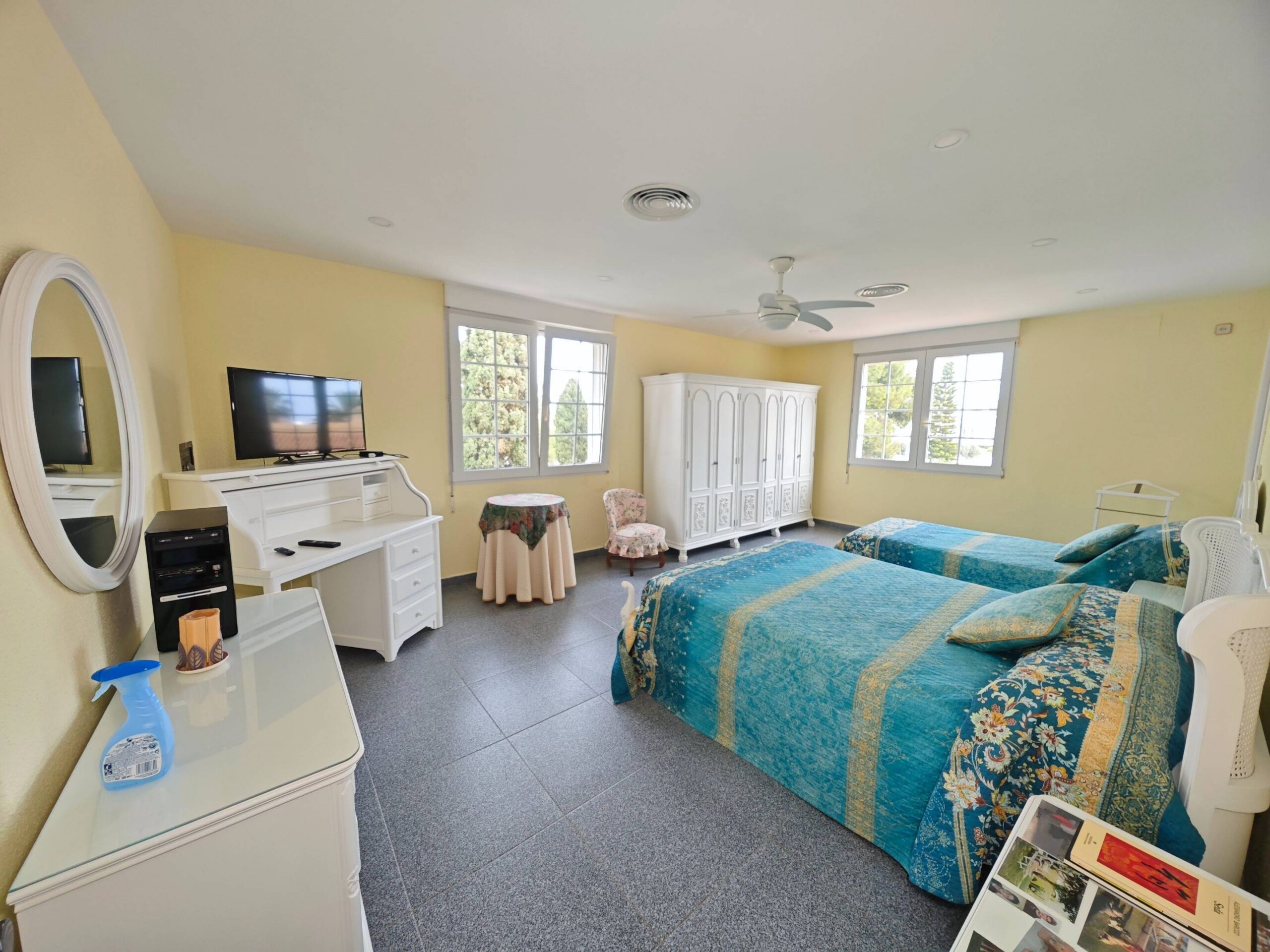Spectaculaire villa te koop in Cabo Roig, Orihuela Costa. De woning beschikt over zeven slaapkamers, vier badkamers, twee woonkamers, twee parkeerplaatsen, airconditioning, een alarmsysteem, barbecuegedeelte, balkon, speelkamer, ingebouwde kasten, wasruimte, pergola, opslagruimte, tuin, meubels, patio, terras en een privézwembad. Deze prachtige hoekwoning met zuidelijke oriëntatie is verdeeld over twee verdiepingen.~Cabo Roig in Orihuela Costa is een rustige en populaire kustregio die bekend staat om haar kristalheldere stranden en rotsachtige baaien met een ontspannen sfeer. Het biedt een breed scala aan restaurants, bars en diensten—ideaal voor vakanties of permanente bewoning—vooral voor liefhebbers van zon en zee.~Locatie: Cabo Roig, Orihuela Costa~Kenmerken: 7 slaapkamers | 4 badkamers | 2 woonkamers | Privézwembad | Zuidelijke oriëntatie~Voorzieningen: Privétuin | Barbecuegedeelte | Pergola | Dicht bij stranden~Over de Locatie:~Cabo Roig is een rustige kustregio in Orihuela Costa die bekend staat om haar prachtige stranden en schilderachtige baaien. Het biedt de perfecte mix van ontspanning en gemak met gemakkelijke toegang tot lokale voorzieningen.~Neem Contact Met Ons Op:~Mis deze kans niet! Neem contact met ons op voor meer informatie of om een bezichtiging te plannen.~