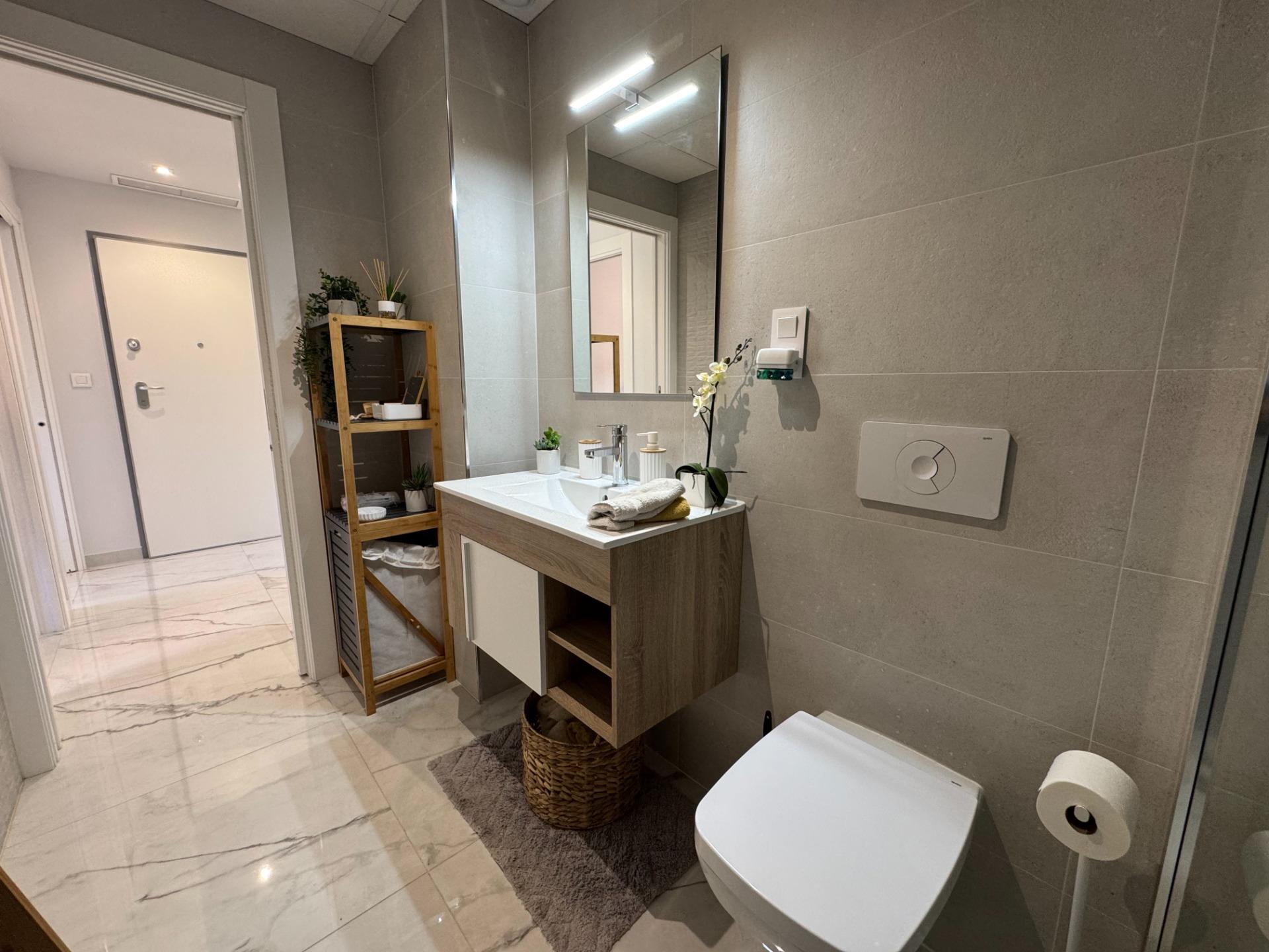 Odkryj kwintesencję śródziemnomorskiego luksusu w tym perfekcyjnie zaprojektowanym apartamencie na parterze, gdzie wyrafinowanie spotyka się z wygodą w każdym zakątku. Ta imponująca rezydencja z 2 sypialniami i 2 łazienkami otwiera się na prywatny, nasłoneczniony taras, tworząc płynną przestrzeń do życia wewnątrz i na zewnątrz, idealną zarówno do relaksu, jak i rozrywki. Apartament prezentuje najwyższej jakości wykonanie, z wysokiej klasy oknami PVC z elektrycznie sterowanymi roletami na pilota oraz luksusowym elektrycznym ogrzewaniem podłogowym w obu łazienkach. Dostarczany w pełni wykończony, dom ten zawiera obszerny pakiet mebli, w tym najwyższej klasy sprzęt AGD firm LG i Hisense, klimatyzację kanałową, eleganckie rolety, nastrojowe oświetlenie, luksusową pościel i ręczniki oraz w pełni wyposażoną kuchnię z wszystkim, od inteligentnego ekspresu do kawy po kompletny zestaw naczyń – wszystko gotowe do natychmiastowego użycia. Mieszkańcy mają ekskluzywny dostęp do udogodnień na poziomie kurortu, w tym prywatnej komórki lokatorskiej, dedykowanego miejsca parkingowego oraz imponującego kompleksu wellness z basenem wspólnym, nowoczesną siłownią, odświeżającą sauną i relaksującym jacuzzi, wszystko otoczone bujną zielenią. Doskonale położony w spokojnym sercu Orihuela Costa, ten apartament oferuje idealną równowagę między spokojem a wygodą, z supermarketem i przystankiem autobusowym zaledwie 500 metrów dalej, i tylko 5 minut jazdy samochodem od prestiżowego pola golfowego Villamartin, tętniących życiem restauracji i miejsc rozrywki – to naprawdę niezrównana okazja dla poszukujących idealnego połączenia luksusu, komfortu i śródziemnomorskiego stylu życia. Skontaktuj się z nami już dziś!~