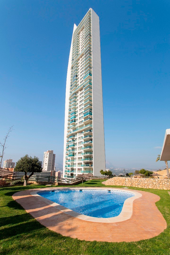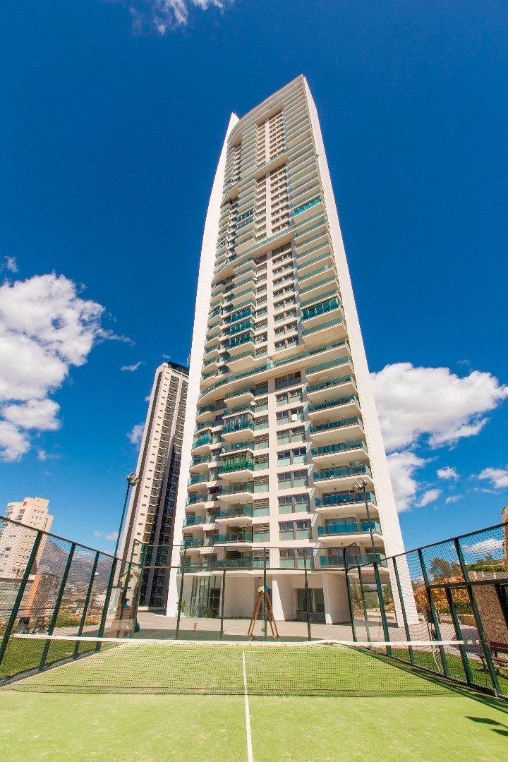On the 29th floor of Torre Lugano is this apartment with stunning panoramic views over all of Benidorm, the mountains and the sea. The Torre Lugano building is the 2nd tallest building in Benidorm with a total of 42 floors and a height of 158m. The apartment with a constructed area of 89m² has 2 bedrooms, 2 bathrooms, living room and a large terrace, where you can enjoy the sun and views. The apartment is oriented to the south. It is very well maintained and has a new Daikin air conditioner with WIFI from 2024. There are also 2 private garage spaces within the building.The apartment has a tourist license and is almost always rented to tourists. It has its own website. The profitability is very very high with demonstrable revenues in 2022 of ?26600, in 2023 of ?29500, and in 2024 of ?30700!! Website, furniture, accessories, customer base, … All inclusive!Torre Lugano in Benidorm has 2 large outdoor swimming pools, another pool for children, a gym, a large garden with playground, tennis court, paddle tennis court and you can also play football and basketball.Torre Lugano has a doorman and video surveillance. ~