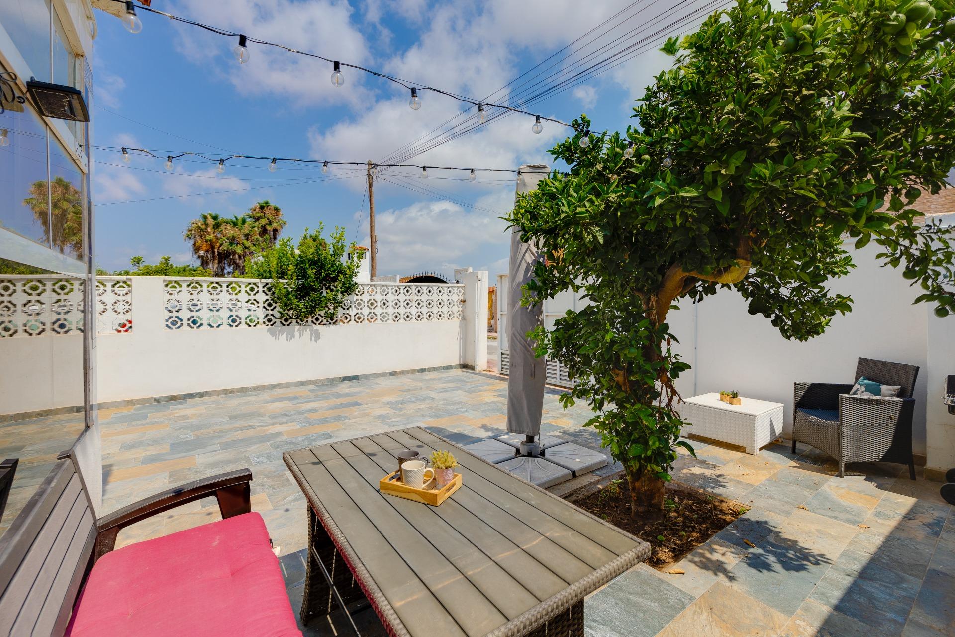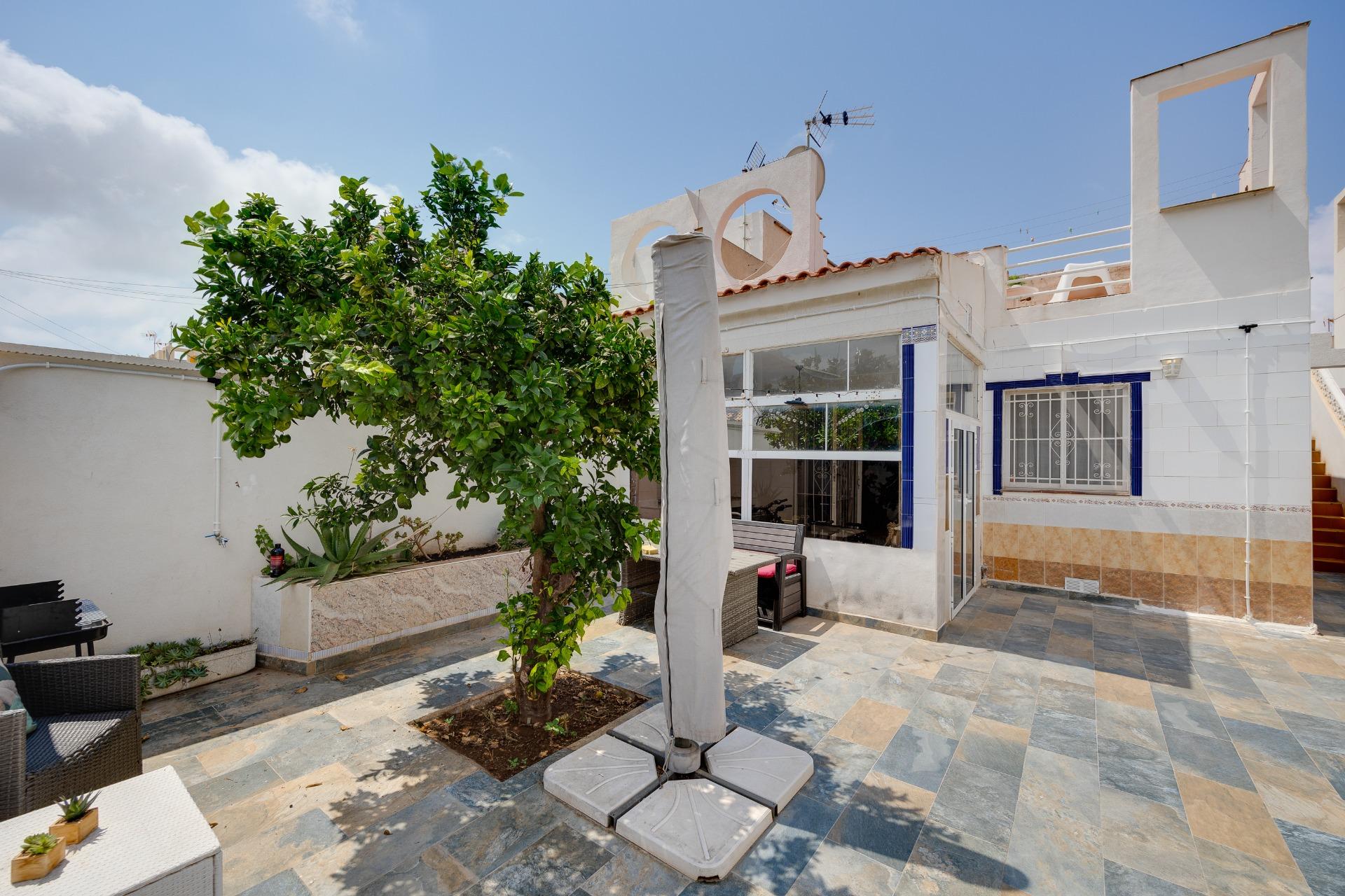 This charming townhouse is located in the sought-after area of Torretas, just minutes from the vibrant center of Torrevieja. Surrounded by all essential services — shopping centers, supermarkets, bus stops, medical facilities, and more — it offers the perfect setting to enjoy the Mediterranean lifestyle.~~The interior features a spacious living-dining room that connects seamlessly to a modern open-plan kitchen, creating a bright and welcoming space ideal for everyday living and entertaining. The home includes two comfortable double bedrooms and a full bathroom equipped with a walk-in shower for added convenience.~~The outdoor spaces are equally impressive. A covered porch with a fully equipped outdoor kitchen invites you to enjoy unforgettable al fresco dinners under the stars, while the private garden offers a peaceful retreat and includes exclusive parking within your own property. Completing the experience is a large private solarium, where you can relax, sunbathe, and enjoy open views throughout the day.~~Key Facts:~~Location: Torretas, Torrevieja — close to the city center and all amenities~~Bedrooms: 2 double bedrooms~~Bathrooms: 1 full bathroom with walk-in shower~~Living Spaces: Open-plan living-dining area with modern kitchen~~Outdoor Features: Covered porch with outdoor kitchen, private garden, exclusive parking~~Extras: Large private solarium with open views~~Torretas is a well-established residential area offering tranquility while being close to everything Torrevieja has to offer, from sandy beaches to excellent shopping and dining.~~Don’t miss this unique opportunity to own a home that combines comfort, functionality, and Mediterranean charm. Contact us today to arrange a viewing.~~~