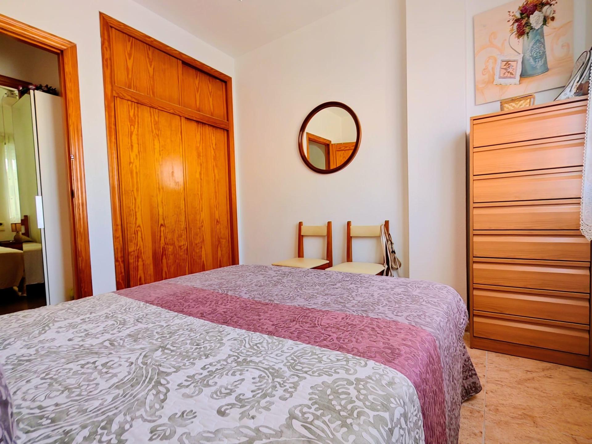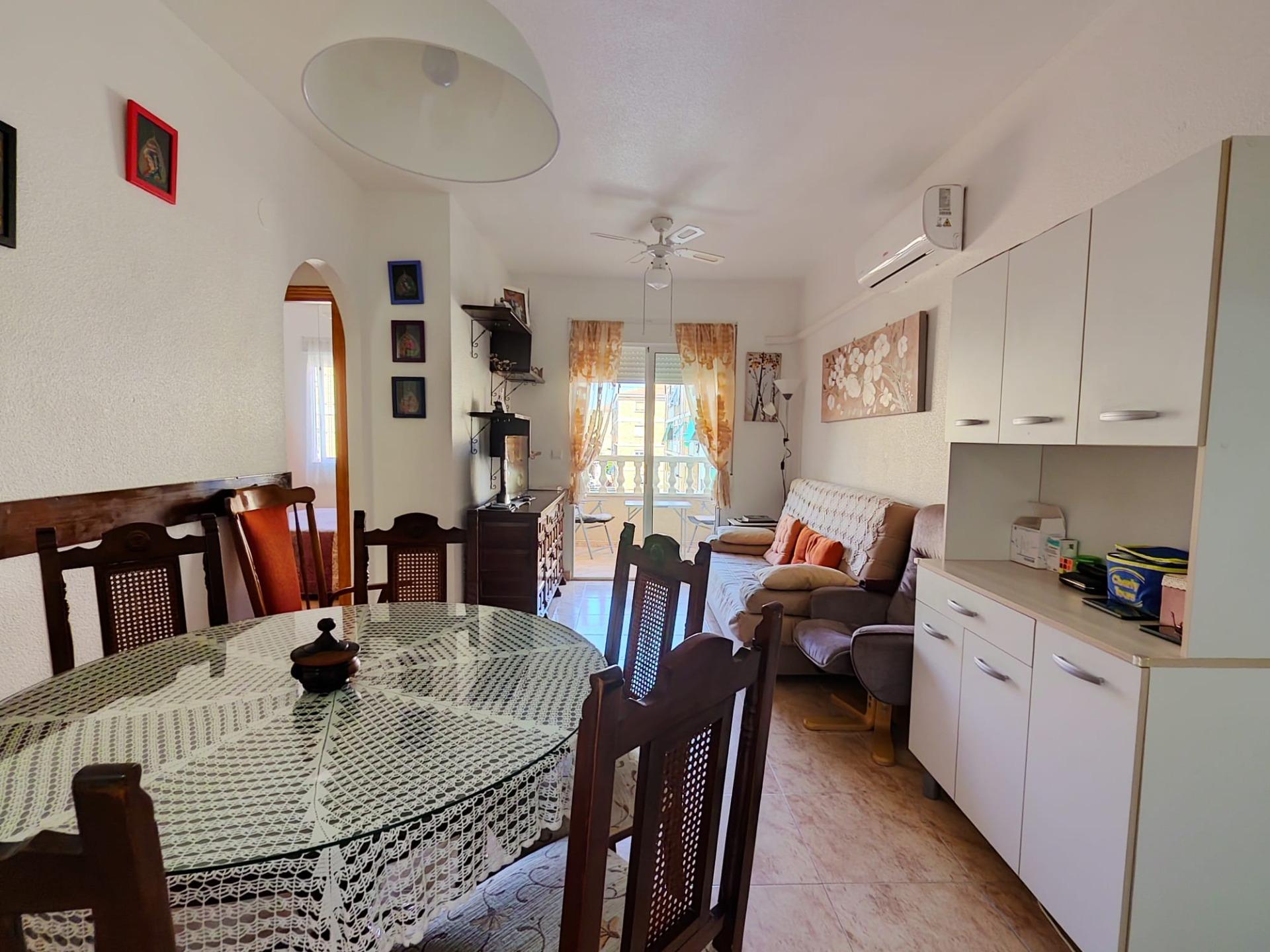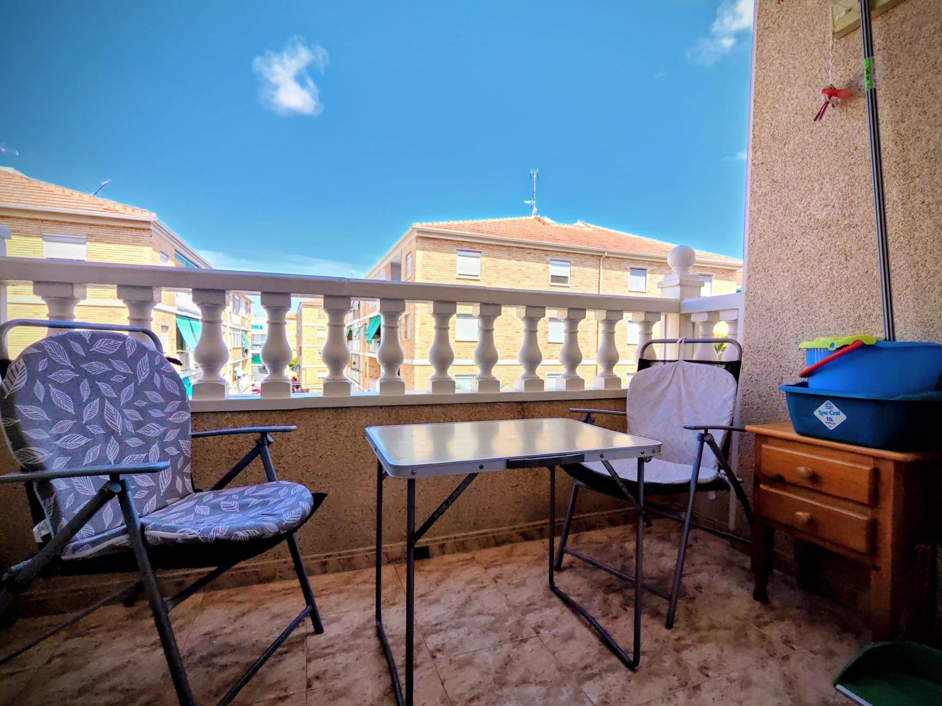 Nestled in the vibrant heart of Torrevieja, just a short 500-metre stroll from the shimmering Mediterranean, this delightful two-bedroom apartment offers the perfect blend of urban convenience and coastal charm. Thoughtfully maintained and bathed in natural light thanks to its north-facing orientation, the 59 m² home invites you to unwind in a serene, sunlit setting.~~The well-distributed interior features two comfortable double bedrooms, a welcoming living area, and a private terrace overlooking lush green spaces—an ideal spot for your morning coffee or evening aperitif. Residents also enjoy access to a lovely communal pool, creating a resort-like atmosphere all year round.~~Whether you’re seeking a turn-key holiday home, a smart rental investment, or a relaxed full-time residence, this property ticks all the right boxes. Its unbeatable location places you within easy reach of public transport, schools, shopping centres, hospitals, and family-friendly amenities—all within walking distance.~~At €125,000, this is an exceptional opportunity to secure a low-maintenance, lifestyle-rich property in one of the Costa Blanca’s most dynamic seaside towns.~~Viewings are highly recommended—discover the true potential of life in central Torrevieja.~