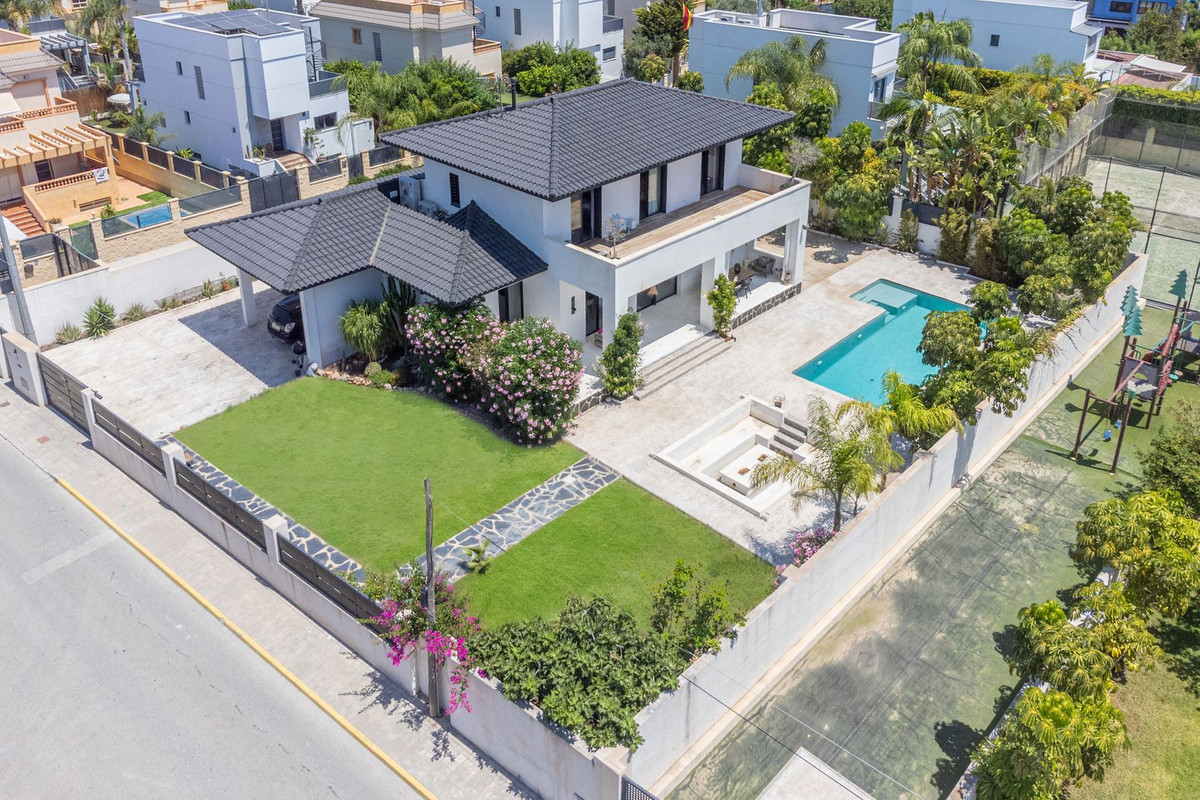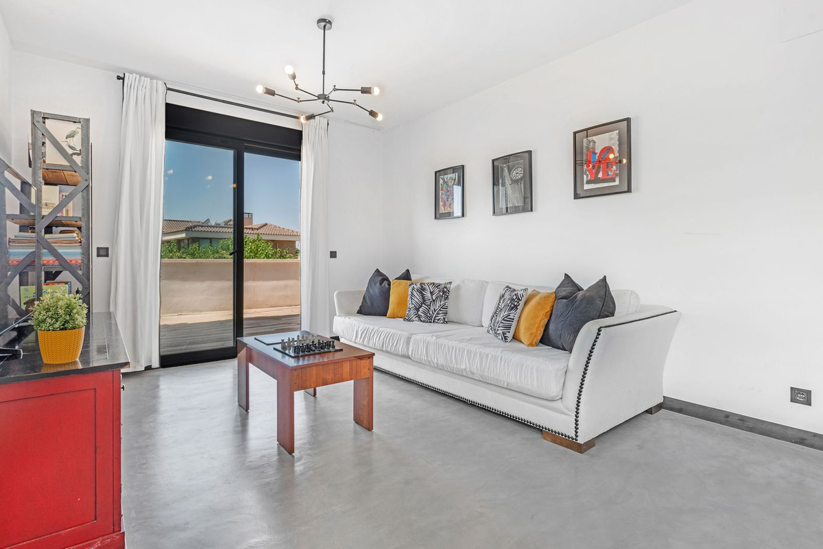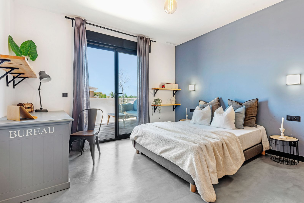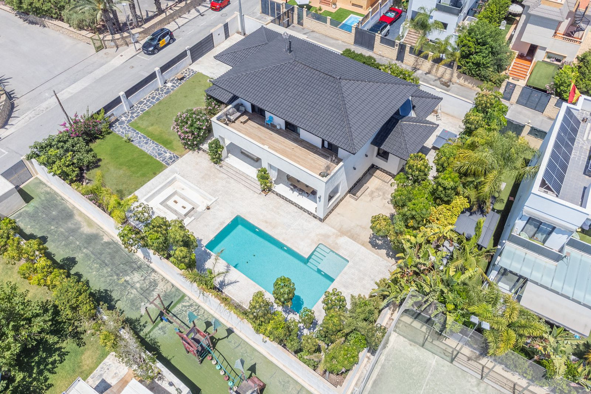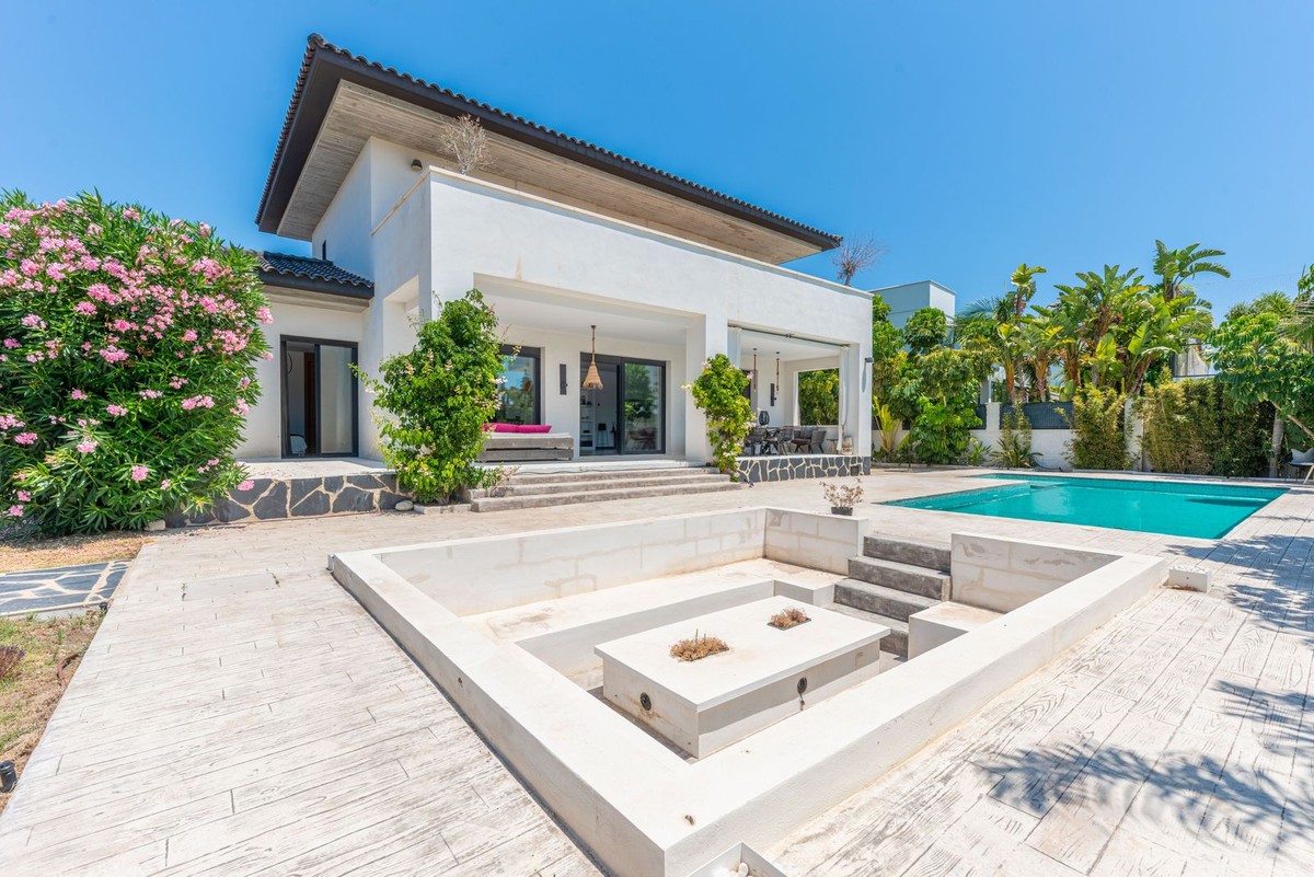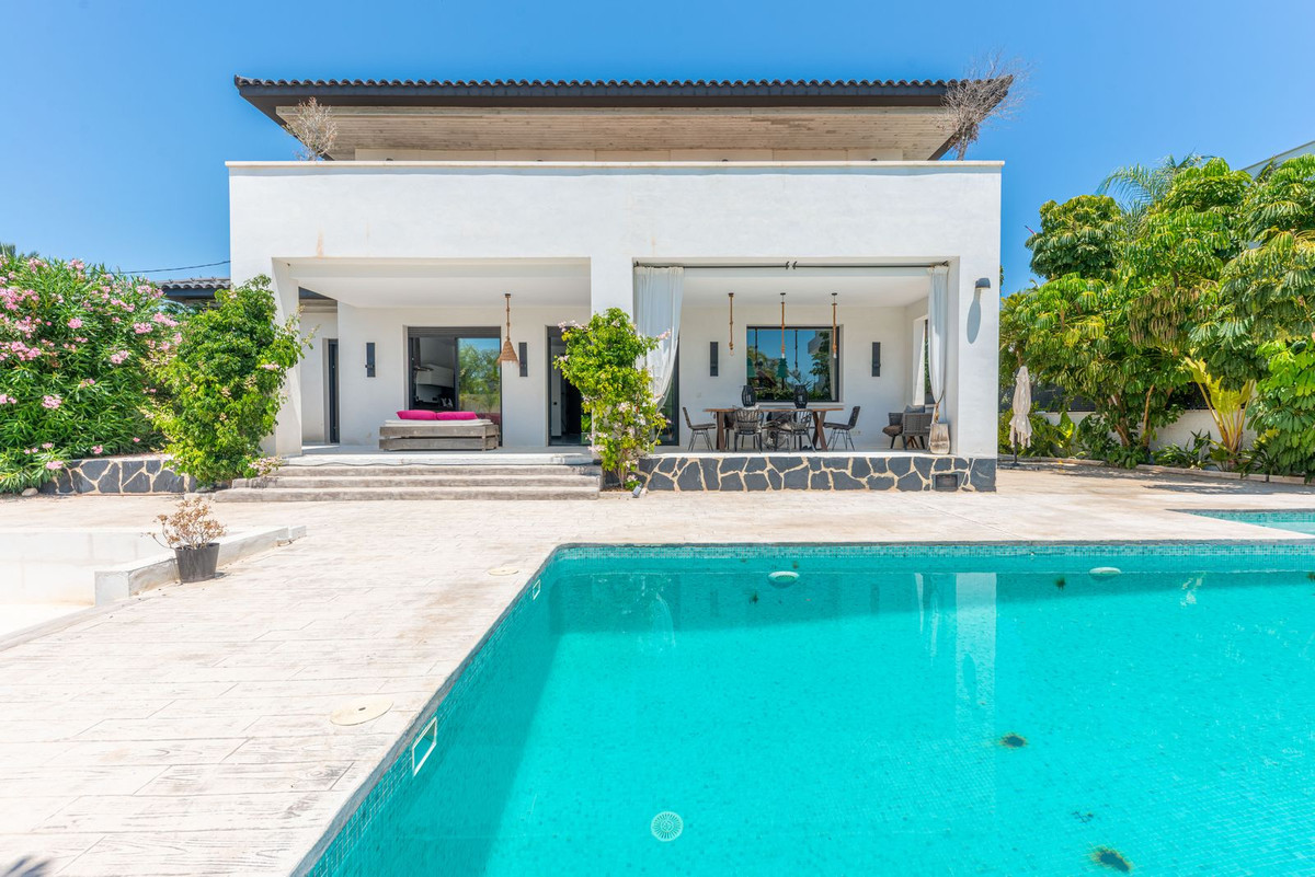 Modern Luxury Villa in a Prime Location ? La Font, AlicanteLocated in the sought-after residential area of La Font, perfectly situated between the stunning Muchavista Beach and with easy access to the highway to Alicante, this modern luxury villa offers an exceptional lifestyle. Built on a completely flat, rectangular, and private plot?almost three times the size of the house?this impressive 360 m² residence stands out for both its design and surroundings.Thanks to its strategic location, architecture, and contemporary interior design, the villa combines spacious, bright areas with high-quality materials and finishes. Features include high ceilings, a state-of-the-art kitchen, and large pool and relaxation areas, making it a truly unique offering on the market.AccessThe property is located on a quiet, one-way residential street. Entrance is via a pedestrian or vehicle gate leading to a spacious access and garage area, with private parking for multiple vehicles.Ground FloorOpen-plan space combining living room, dining area, and kitchen (56.5 m²), with a large central island and a modern, functional kitchen equipped with high-end appliances.This space, along with one of the bedrooms, opens onto a generous covered terrace overlooking the pool, outdoor dining area, and garden.Entrance hall and guest toilet.Three double bedrooms (one currently used as an office), including a master suite with bathroom and walk-in closet.Large laundry and ironing room.Upper FloorTwo additional double bedrooms with built-in wardrobes.Lounge area with direct access to a 32 m² wooden-decked terrace offering panoramic views of the surroundings.ExteriorsL-shaped pool (44 m²) with an adjoining 20 m² chill-out area.Landscaped gardens with mature trees and Mediterranean shrubs.Paved parking and circulation area of approx. 230 m².Most of the plot is terraced, offering multiple spaces for relaxation, entertainment, and outdoor living.This beautiful and modern luxury home is a rare gem and an opportunity not to be missed.~