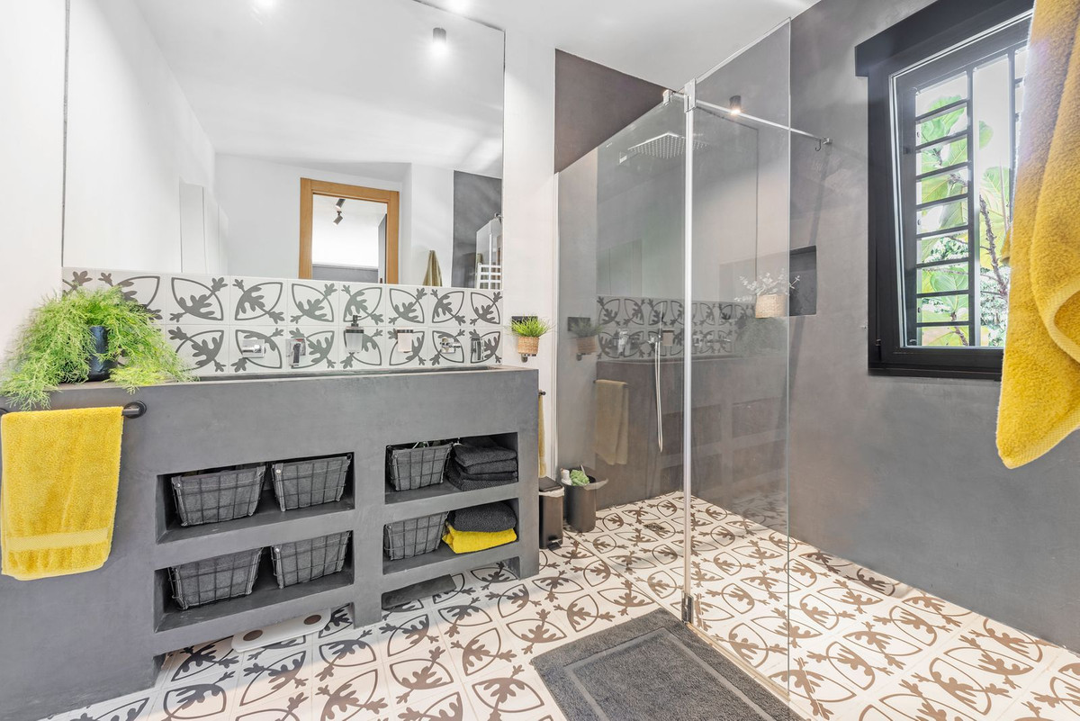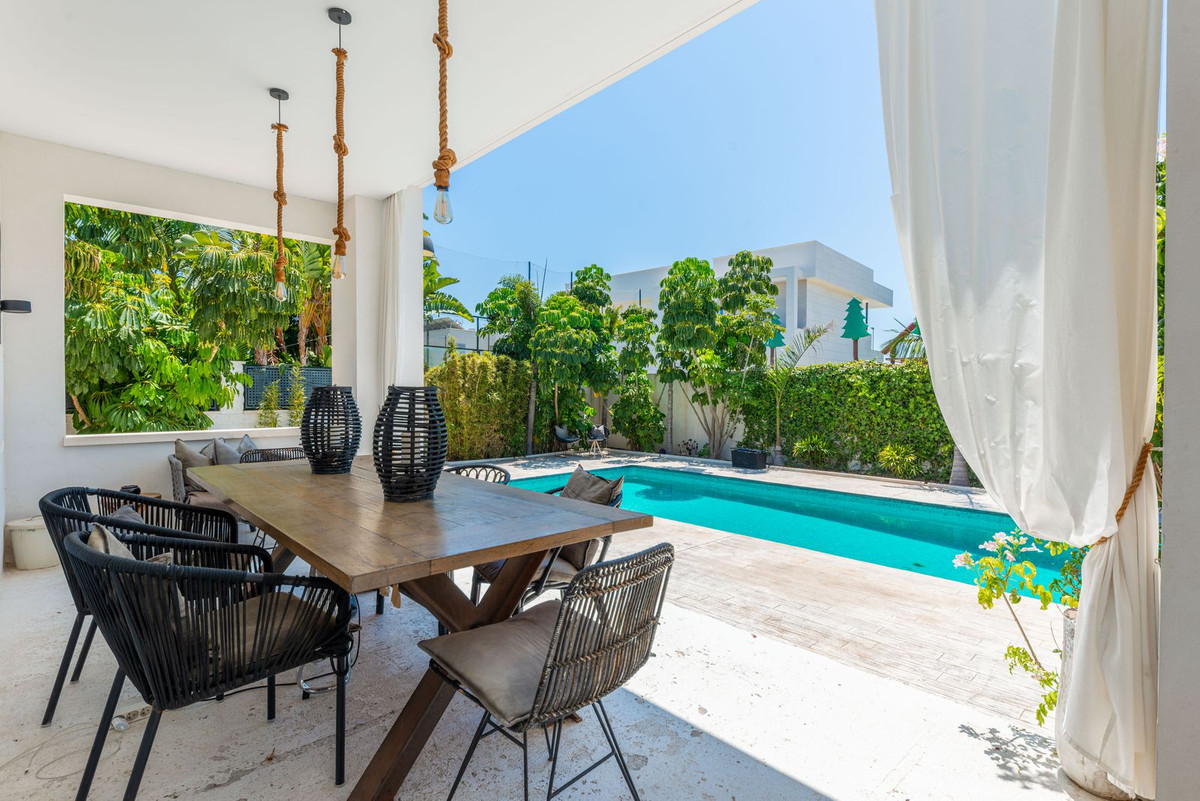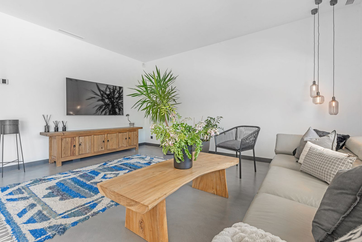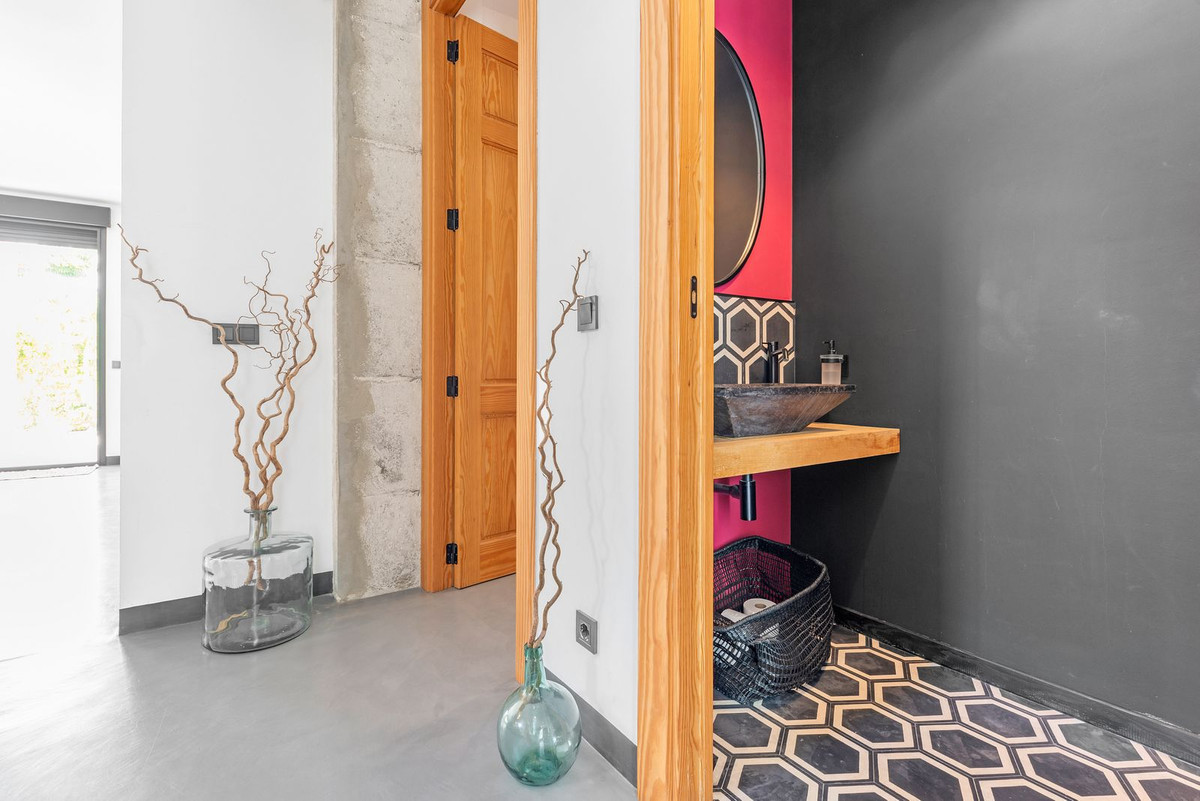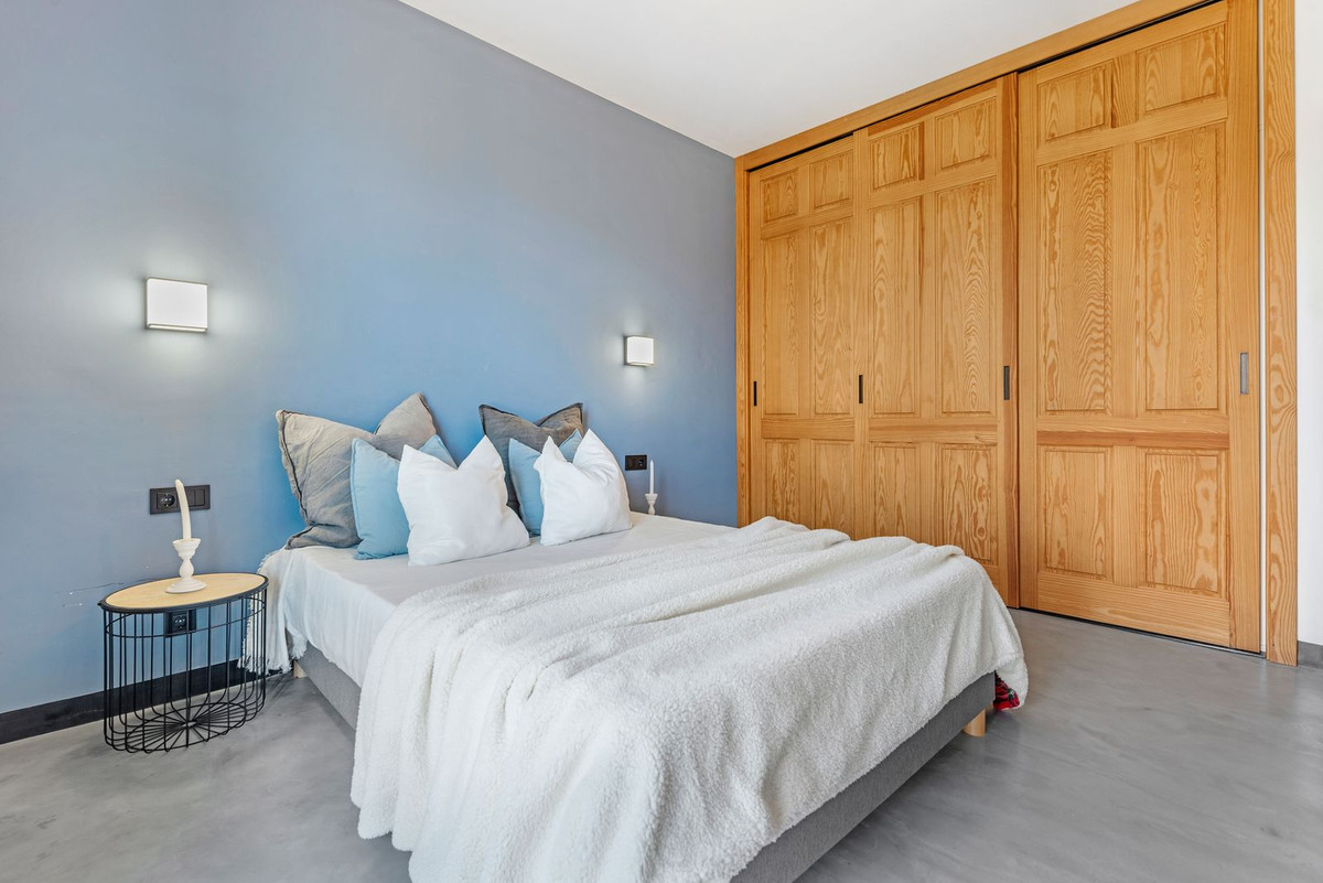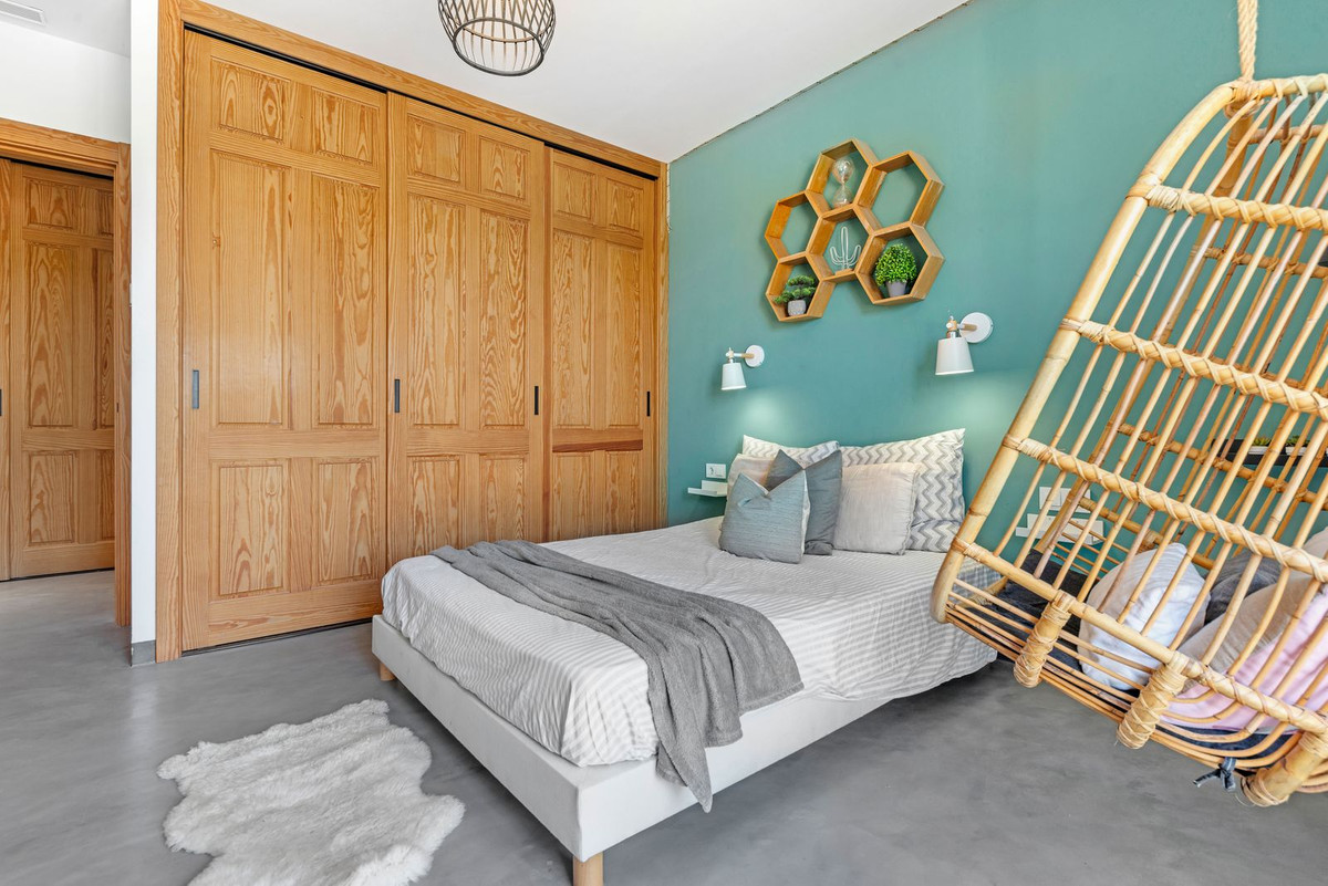 Modern Luxury Villa in a Prime Location ? La Font, AlicanteLocated in the sought-after residential area of La Font, perfectly situated between the stunning Muchavista Beach and with easy access to the highway to Alicante, this modern luxury villa offers an exceptional lifestyle. Built on a completely flat, rectangular, and private plot?almost three times the size of the house?this impressive 360 m² residence stands out for both its design and surroundings.Thanks to its strategic location, architecture, and contemporary interior design, the villa combines spacious, bright areas with high-quality materials and finishes. Features include high ceilings, a state-of-the-art kitchen, and large pool and relaxation areas, making it a truly unique offering on the market.AccessThe property is located on a quiet, one-way residential street. Entrance is via a pedestrian or vehicle gate leading to a spacious access and garage area, with private parking for multiple vehicles.Ground FloorOpen-plan space combining living room, dining area, and kitchen (56.5 m²), with a large central island and a modern, functional kitchen equipped with high-end appliances.This space, along with one of the bedrooms, opens onto a generous covered terrace overlooking the pool, outdoor dining area, and garden.Entrance hall and guest toilet.Three double bedrooms (one currently used as an office), including a master suite with bathroom and walk-in closet.Large laundry and ironing room.Upper FloorTwo additional double bedrooms with built-in wardrobes.Lounge area with direct access to a 32 m² wooden-decked terrace offering panoramic views of the surroundings.ExteriorsL-shaped pool (44 m²) with an adjoining 20 m² chill-out area.Landscaped gardens with mature trees and Mediterranean shrubs.Paved parking and circulation area of approx. 230 m².Most of the plot is terraced, offering multiple spaces for relaxation, entertainment, and outdoor living.This beautiful and modern luxury home is a rare gem and an opportunity not to be missed.~