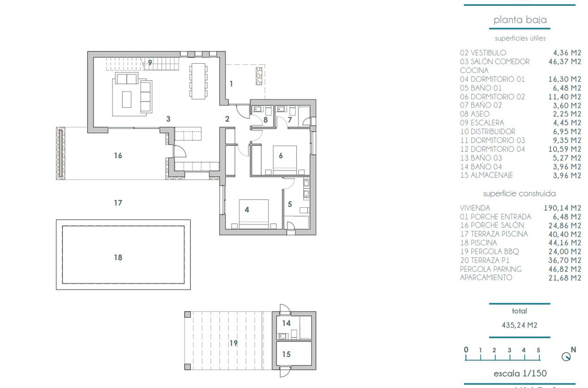 Stylish new build villa for sale in MorairaLocated in a new development in Pinar de L´Advocat not far from Moraira. This Mediterranean property combines luxury and comfort under the Spanish Sun. Clean lines yet a warm feel due to the use of natural stone and other natural materials. The quaint village of Moraira is just over a kilometre away. Here you can find everything: nice shops, restaurants, terraces, a lovely sandy beach, marina and a variety of other amenities.This contemporary villa gets 2 floors. On the ground floor is the spacious living-dining room, a modern kitchen, guest toilet and 2 bedrooms en-suite. Internal stairs lead to the upper floor where there are 2 more bedrooms with access to a private terrace. These bedrooms share a bathroom. From the lounge and kitchen, there is access to a covered terrace that flows seamlessly into the sun terrace around the 40m2 pool. Here there is also a pergola bbq where you are sure to spend many summer evenings at the dining table. Next to this pergola is a storage room and the fourth bathroom.In the maintenance-free garden you can find peace and quiet and enjoy all that Mediterranean life has to offer. There is also a carport for 2 cars. Other features of this attractive villa: pre-installation of underfloor heating and alarm, outdoor shower, double glazing and air conditioning (ducts).Interested in this little paradise? Feel free to contact one of our staff members.The displayed price does not include taxes and purchase costs / The offer is subject to errors, price changes, availability, omission and / or withdrawal from the market without prior notice / Furniture and contents according to personalized agreement and not according to the photos in the presentation ~