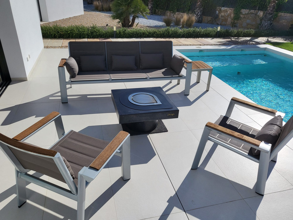 Exquisite 4-bedroom, 4-bathroom Villa nestled within the prestigious Las Colinas Golf amp; Country Club. Positioned centrally on a generous plot spanning 1705m2, the Villa boasts lush natural landscaping throughout. Crafted to impeccable standards, this residence showcases a generously sized heated pool complete with an electric cover, alongside outdoor luxuries such as a Finnish sauna, sunken hot tub, and a designated fire pit area.Internally, the Villa presents an open-plan layout seamlessly integrating the kitchen, dining, and living areas, accentuated by expansive full-height windows and doors. Each bedroom offers the convenience of an en-suite, featuring heated flooring in the bathrooms and electric shutters throughout.The basement level encompasses a double garage, utility room, office space, and a fourth bedroom with an en-suite and dressing area. Conveniently situated within walking distance to the club house, residents have easy access to resort amenities, sporting facilities, dining options, and the renowned golf course.In essence, this remarkable Villa epitomises secluded elegance and warrants personal viewing to truly appreciate its allure.~