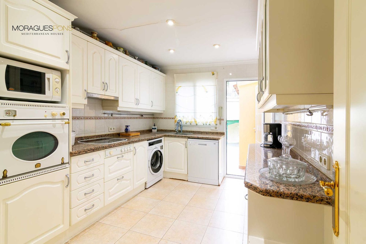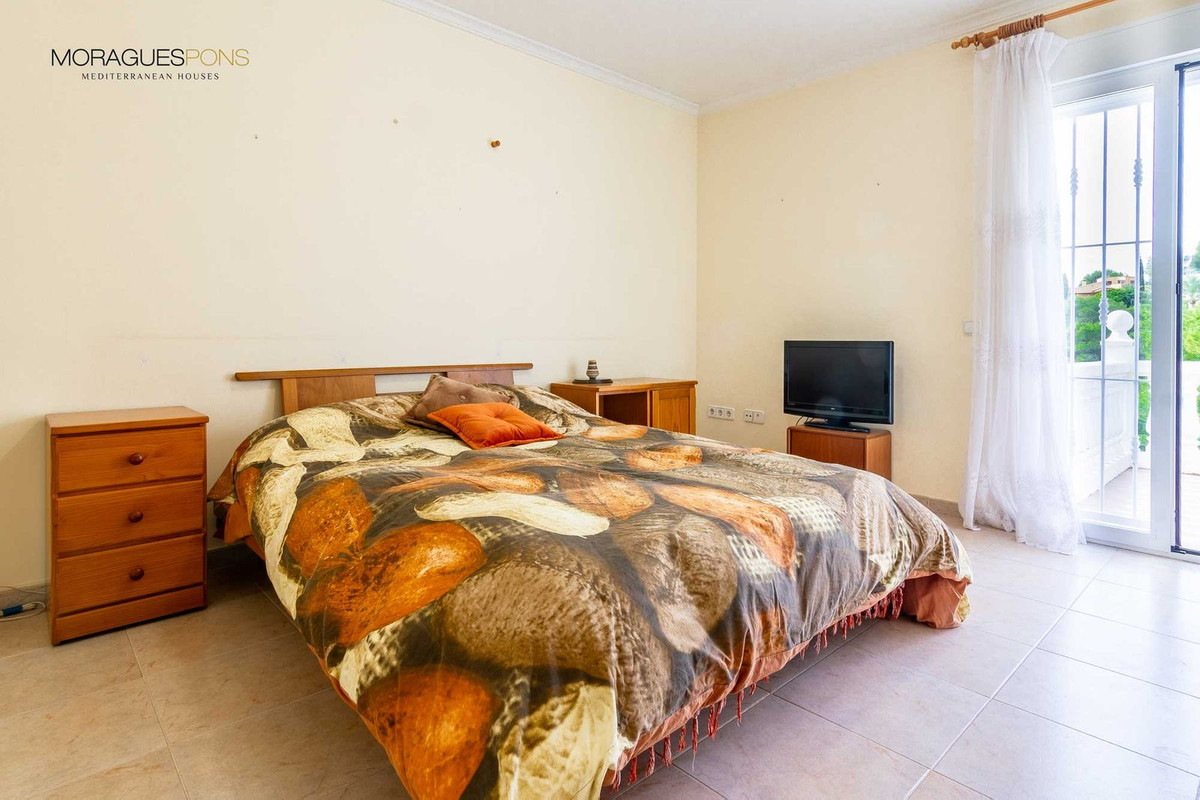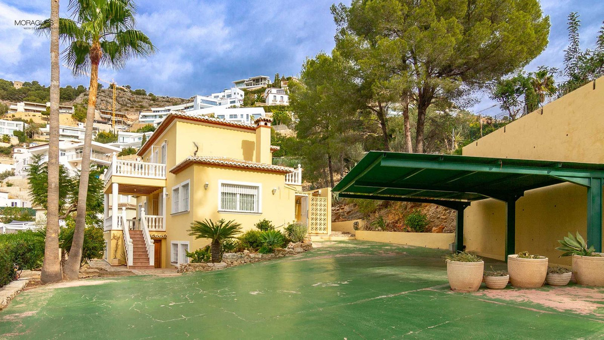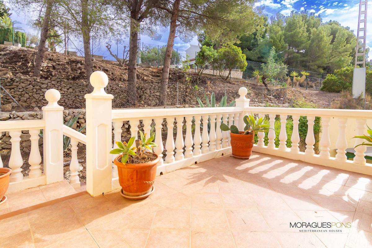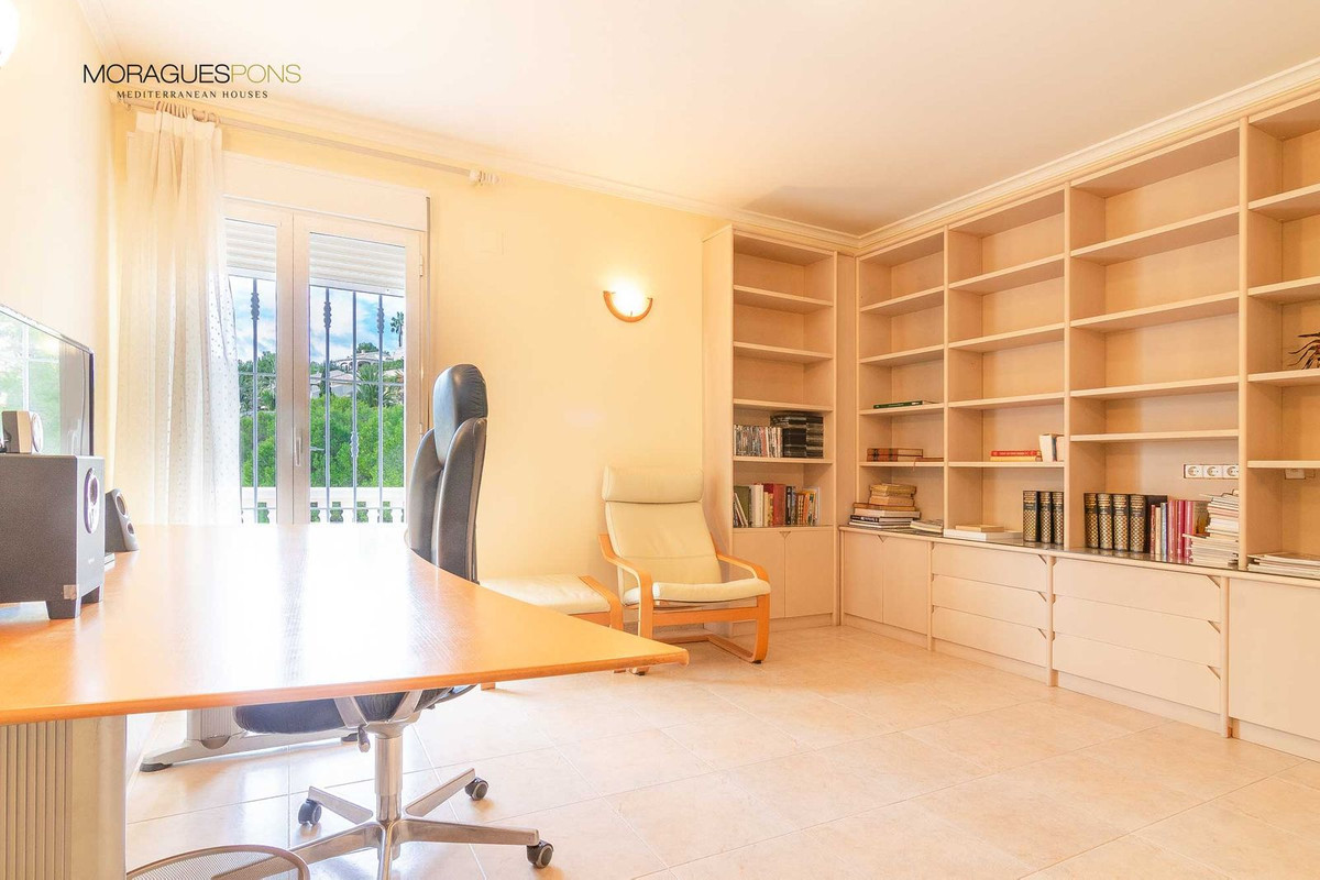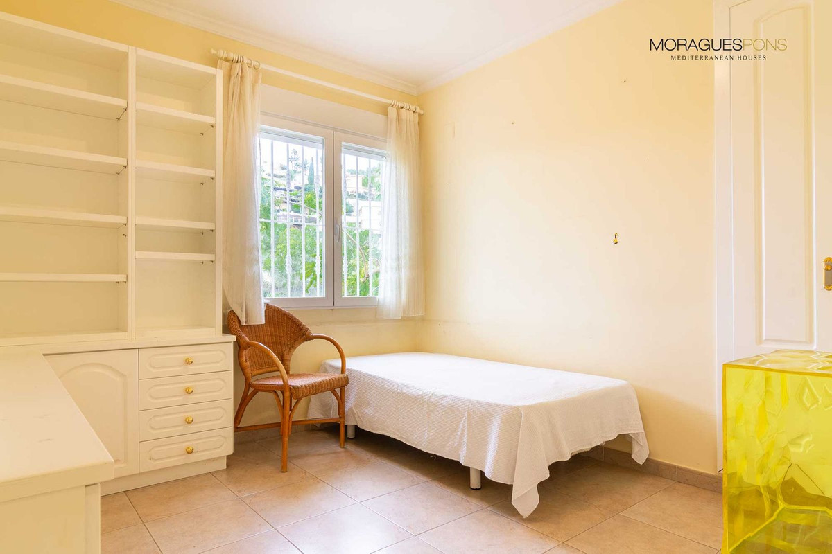 This house is strategically located just 15 minutes walk from the port, (1 km) which allows easy access to port activities and at the same time offers the tranquillity of a residential area. The house is oriented towards a green area, which means that residents can enjoy unobstructed and peaceful views of nature.The house is very spacious, with 5 bedrooms, which makes it ideal for a large family or someone who enjoys having a lot of space. It also has 4 bathrooms, providing comfort and privacy for all residents.There is a guest flat on the ground floor with a separate entrance. All in all, this house in La Corona, Jávea, seems to be a place made for enjoyment, offering a combination of comfort, accessibility and tranquillity – a wonderful place to live! You will love it for – Underfloor heating throughout the house. – Low maintenance mature garden with native plants, with sunny and shady areas. ~