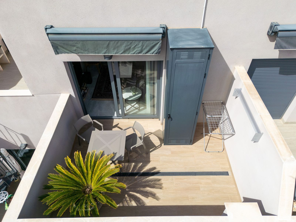 Beautiful two bedroom penthouse in the center of Torrevieja. The apartment has a spacious living room and open kitchen, underfloor heating in the bathrooms, two sunny balconies and a private roof terrace. One of the balconies is partially covered, resulting in a comfortable winter room. However, there is also space on the terrace to grill and enjoy the sun. The apartment complex has a common pool area in the courtyard, as well as a Finnish sauna. The apartment has its own parking space in the underground parking garage, from where you can easily get to the living floor by elevator. The services of the center of Torrevieja are within walking distance, the beautiful church square only a couple of hundred meters away, and walking distance to the beach promenade and swimming coves.Property tax approx. 220?/yearCommunity fees approx. ?676/year~