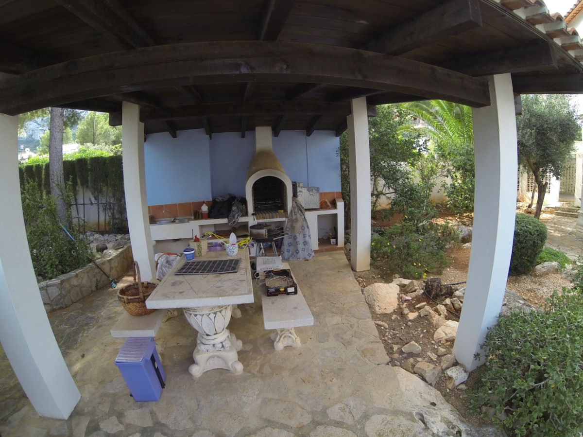 Impressive Villa in one of the quietest and most pleasant areas of Denia, with great views of the Montgó natural park, and partial views of the sea. A house fully equipped to move into. The property consists of a fully furnished main house of 310m2 with gas central heating and air conditioning, with 4 bedrooms the master with toilet, living room with fireplace, kitchen, toilet shower and a bathroom of about 25m2 with hydromassage cabin, a tower with a bedroom and bathroom, and a studio with a shower toilet. There is a pool house with, a kitchen, shower toilet and storage room. It also consists of a covered area with a built-in barbecue, 2 benches and table, and a garage with pergola. It has a plot of 2700m2 with entrance from two streets, totally private and fenced with large well-kept gardens, a well, several terraces with green spaces and private pool. It is 1 km from Denia and 2 km from the sea. ~