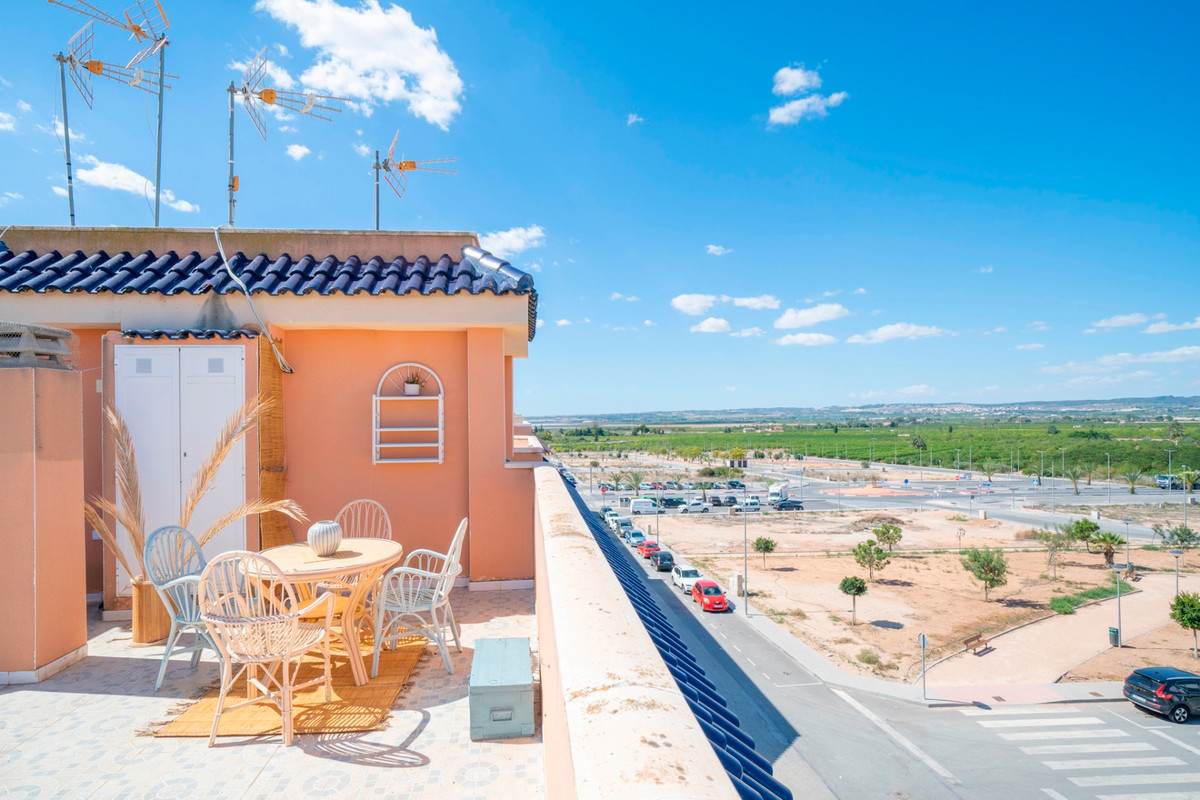 This house is a second floor and has 70m2 built. It is located in a block with only 4 apartments.amp;amp;It is distributed in a living-dining room with an open kitchen, three bedrooms and a complete bathroom with a shower. It is delivered furnished as it appears in the images.amp;amp;The property faces west and has unobstructed views.amp;amp;Central location in the municipality of Los Montesinos, just 5 minutes from the square and all the main services, shops and leisure offers in the town.amp;amp;The roof solarium is divided into 2 halves that are shared between two apartments. This space can be used as an area to enjoy outdoor leisure: sunbathing, having small gatherings with family and friends, installing some pots as a garden, etc.~