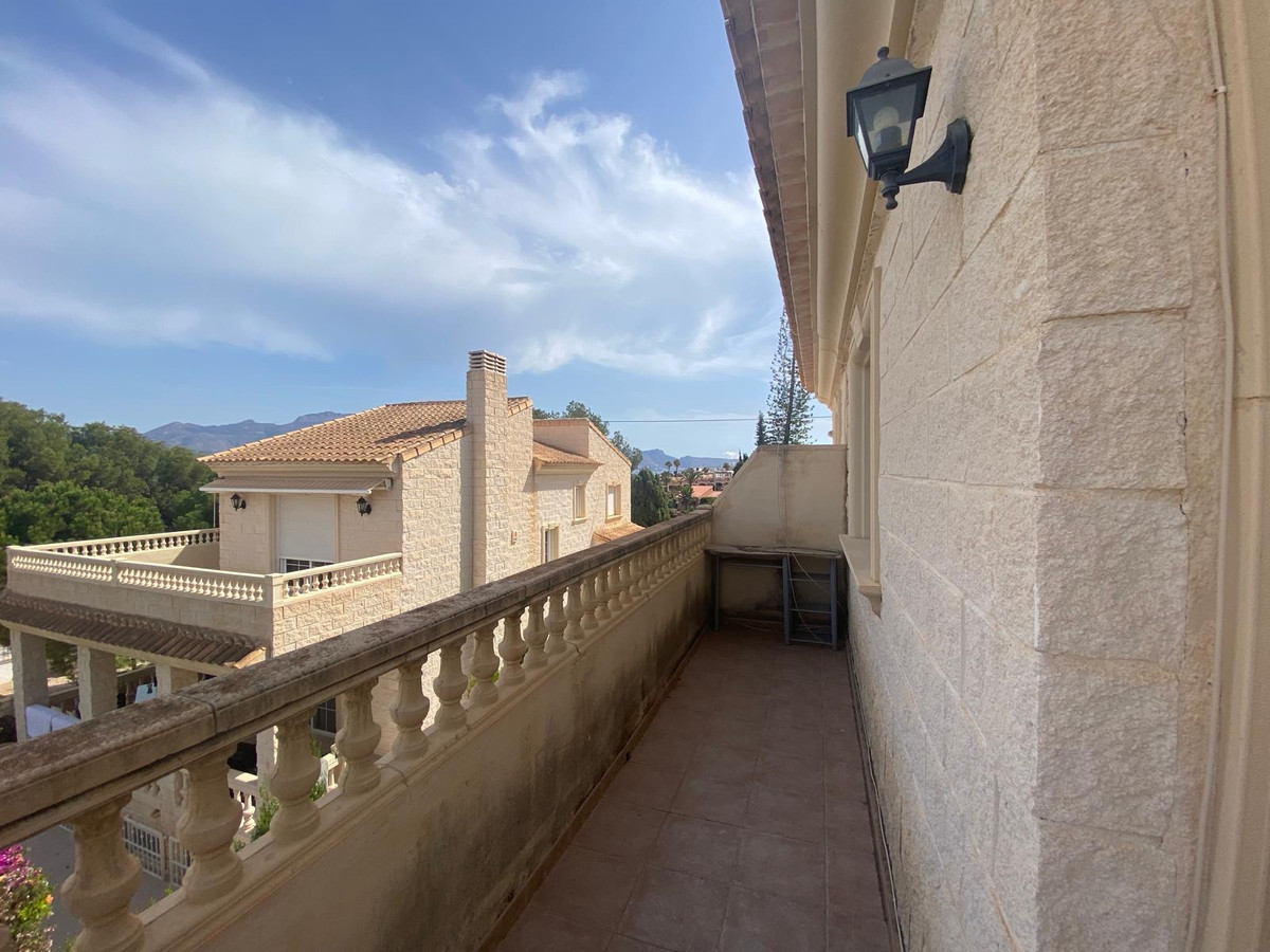 The villa has a built-up area of 306 m² on a plot of 105 m², located in a quiet area of Albir.amp;nbsp;amp;amp;Through the entrance, you step into the hall from where you have access to the guest toilet, the garage, the stairs to the basement and the kitchen.amp;nbsp;amp;amp;From the kitchen you walk into the spacious living/dining room and the large French doors give you access to the beautiful, spacious veranda. Stairs lead down to the back garden, which gives you access to the communal pool through the back gate.amp;amp;The basement is currently used as a gym/library and relaxation room. This space can also be converted into a fully functional living space if required.amp;nbsp;amp;amp;On the first floor there are 4 bedrooms, of which the master bedroom has an en suite bathroom and a terrace. 2 bedrooms also lead to another living space that can also be converted into an extra room if desired. Furthermore, there is also an upstairs bathroom that is easily accessible from all bedrooms on the hallway.amp;amp;The villa is within walking distance of the beach and the centre with all its amenities and 74 km from Alicante International Airport.amp;amp;~