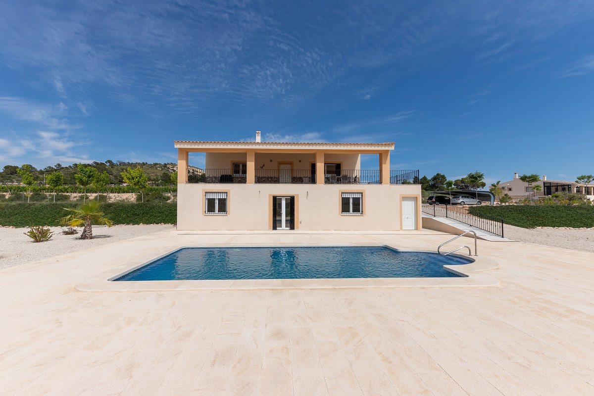 Magnificent newly built villa for an exceptional price! This fantastic villa is located in the La Romana area. The main house and other buildings add up to a total of 180 square meters built, located on a 10,000 m2 plot, of which approximately 3,500 m2 are fully fenced. You have the option of choosing the finished basement or a separate guest house. The price includes the 4 x 8 m2 pool and kitchen furniture of your choice of excellent quality. The main house consists of a large bright living room, a good size kitchen distributed as you wish, 3 bedrooms and 2 bathrooms. Also in the basement or guest house you will have 2 more bedrooms and 1 bathroom. The house has Air Conditioning.You will be the one who chooses aspects such as: kitchen furniture, tiles, flooring, doors, color of the windows, color of the façade, stone of the façade … make your magnificent chalet your unique home!We are specialists in the Costa Blanca and Costa Calida specialising in the Alicante and Murcia Inland regions with a particular emphasis on Elda, Pinoso, Aspe, Elche and surrounding areas. We are an established, well known and trusted company that has built a solid reputation amongst buyers and sellers since we began trading in 2004. We offer a complete service with no hidden charges or surprises, starting with sourcing the property, right through to completion, and an unrivalled after sales service which includes property management, building services, and general help and advice to make your new house a home. With a portfolio of well over 1400 properties for sale, we are confident that we can help, so just let us know your preferred property, budget and location, and we will do the rest.~