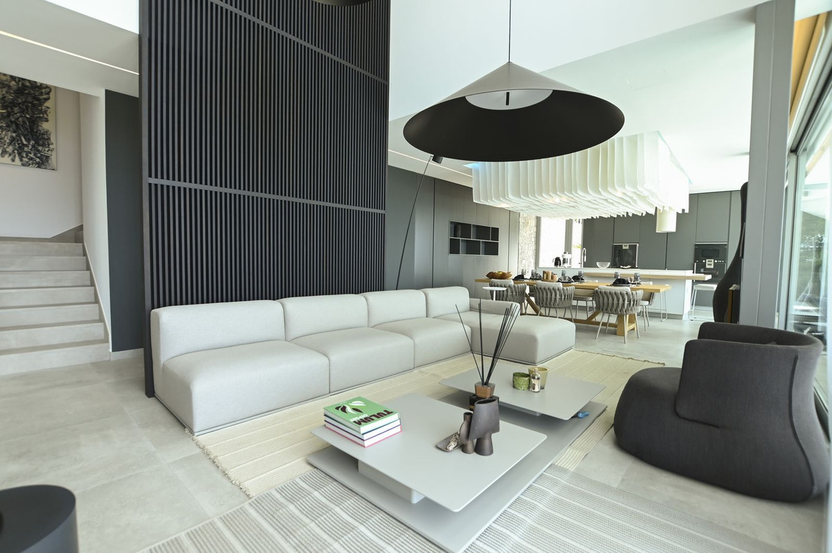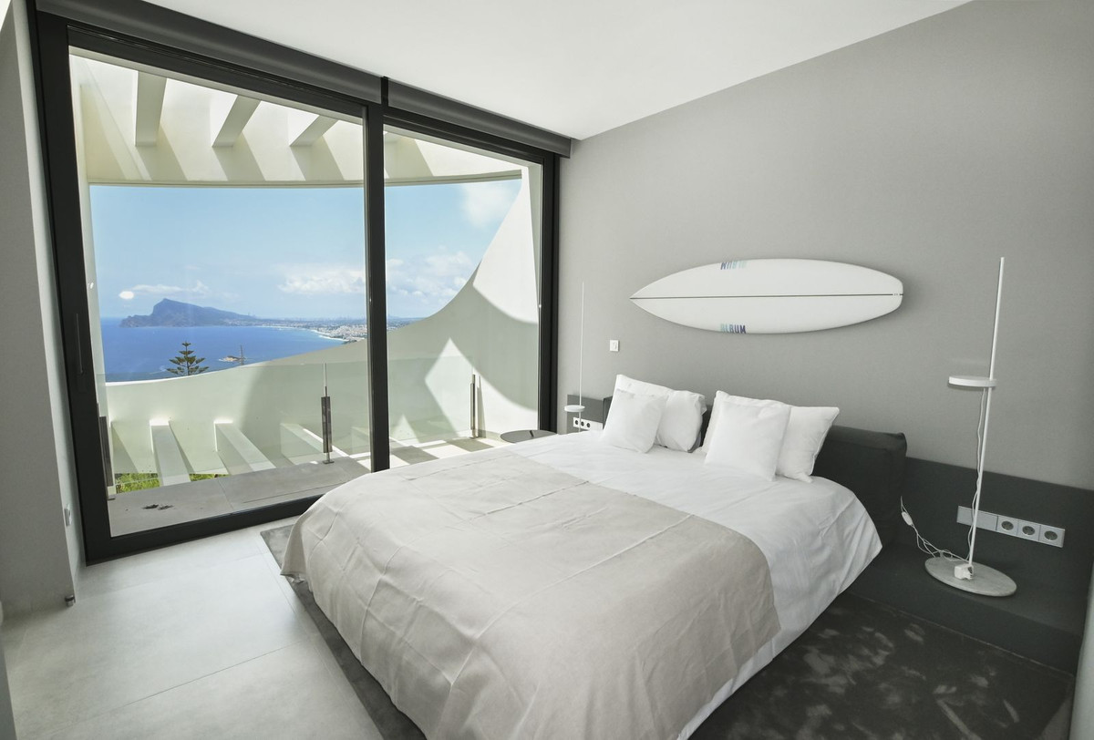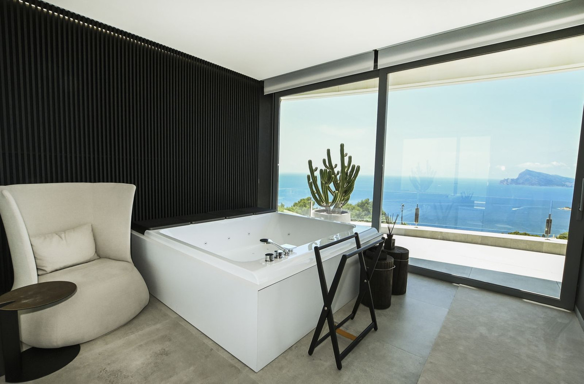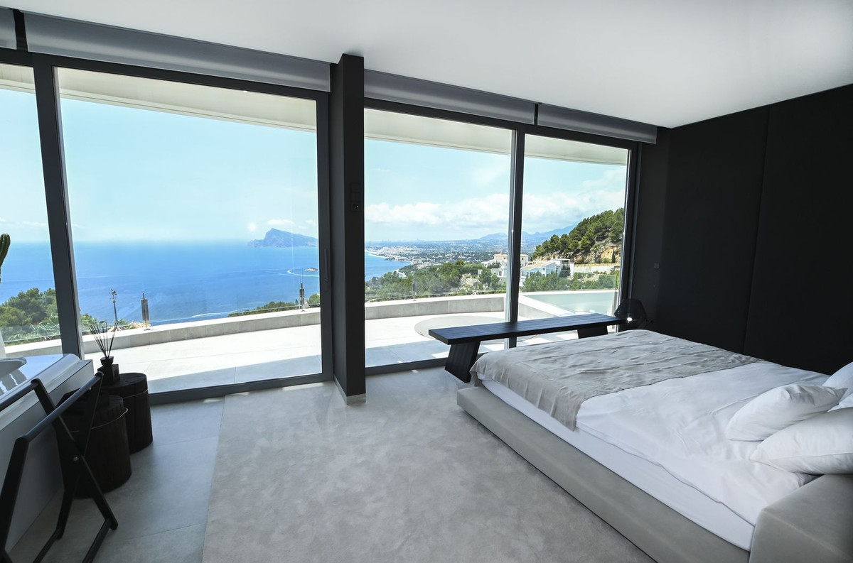 Modern and exclusive villa with unparalleled sea views, Altea Hills.The living area is divided into four floors as follows:1) Second floor: entrance, staircase and elevator access. In addition, on this floor, there is a driveway outside with a covered parking space for two cars and an additional terrace with a sail.2) First floor: hallway, two bedrooms, two bathrooms and two uncovered terraces.3) Ground floor: living room with dining room and open, fully equipped kitchen with exclusive Gaggenau appliances, one bedroom, dressing room, bathroom, toilet, covered terrace, uncovered terrace with pool of 48.20 m2 and garden.4) Semi-basement: gym, sauna, laundry room, bathroom and additional space currently used as an additional bedroom.Features include: automatic entrance gate, automatic watering in the garden, central air conditioning with heating and cooling, underfloor heating, elevator and much more.This luxurious property has been finished with first-class materials. The villa for sale comes with full furnishings, which are premium class. The villa was designed by professional interior designers with a total value of more than 140,000 euros. Some of the many details include a Bang TV and sound system, Lutron blinds, Wastberg lamps, Paola Lenti garden furniture, various paintings and decorations by Tulip Design, Desiree deck chairs, Antonio Lupi pots and much more.The property is located in a privileged gated neighborhood with 24-hour security. Distances: luxury yacht port Campomanes, beach, restaurants within a few minutes drive, Altea town center 6 km, sandy beach and center of Calpe 10 km, airport 72 kmYear of construction 2019.More details upon request.~