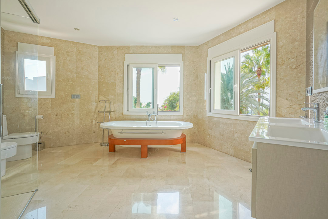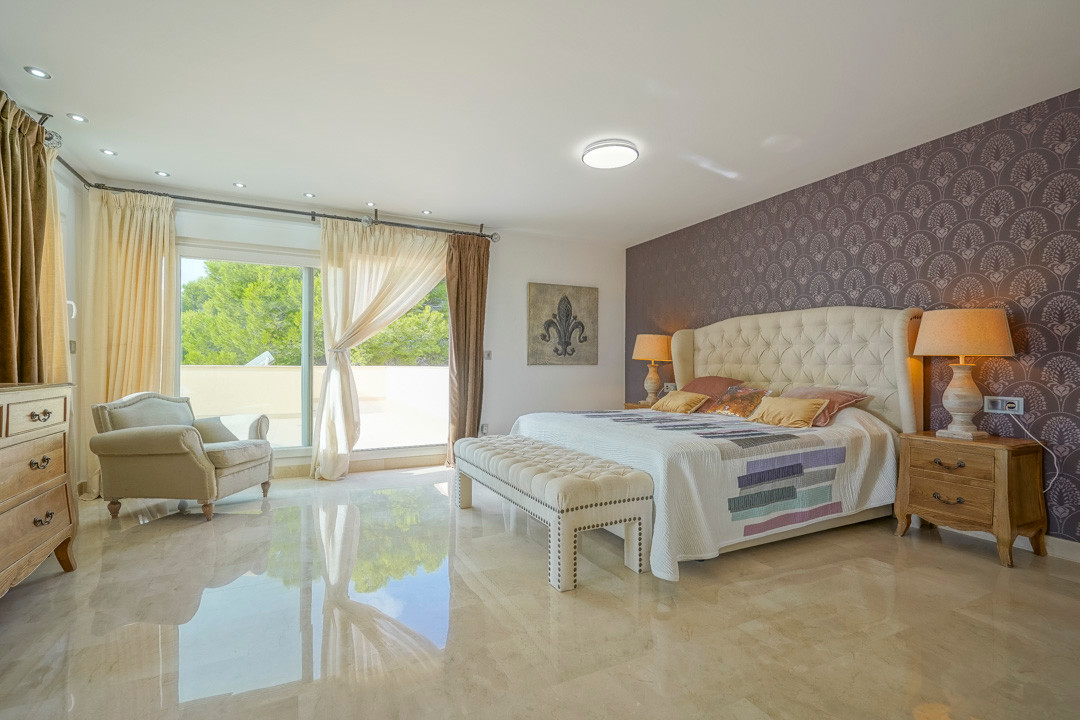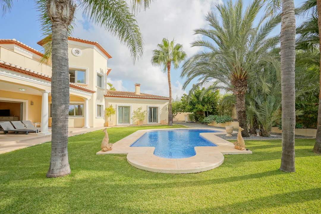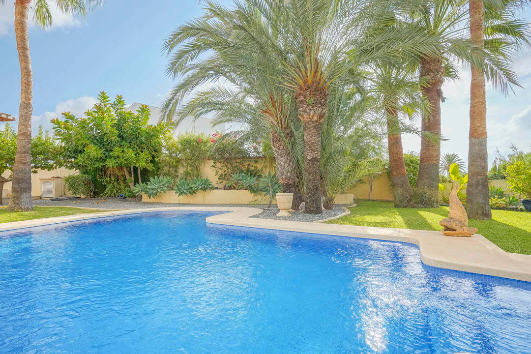 amp; This traditional Spanish villa is located in a quiet area in Benissa a short distance from the coast. The ground floor comprises a spacious living-dining room, a fully equipped, modern kitchen and three double bedrooms, each with a private bathroom. The master bedroom is on the first floor and has a very spacious bathroom with sea views, a dressing room and a large terrace from where you can also enjoy the beautiful views of the Peñon de Ifach and the sea. Both the living room and all bedrooms on the ground floor have direct access through sliding windows to the spacious covered terrace. From the terrace you have views over the large swimming pool surrounded by a beautiful mature Mediterranean garden with several palm trees. On the other side of the villa is a large driveway with a carport and parking space for several cars. In the basement there is another laundry room and a storage room. The villa has underfloor heating, air conditioning, shutters, automatic irrigation and solar panels. In less than 5 minutes you reach the coast of Benissa where there are several idyllic beaches. In less than 10 minutes you reach the tourist port village of Moraira and in just 15 minutes you are in the lively seaside town of Calpe.amp;~