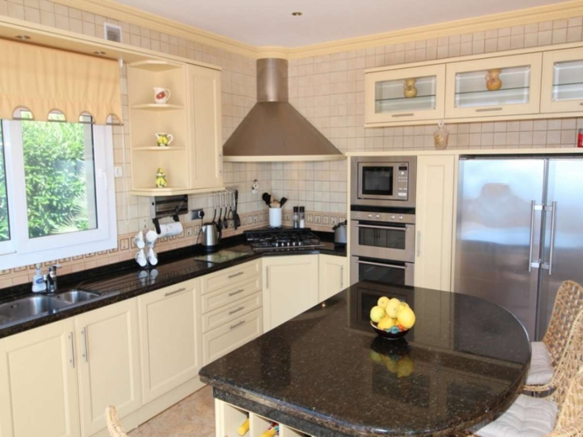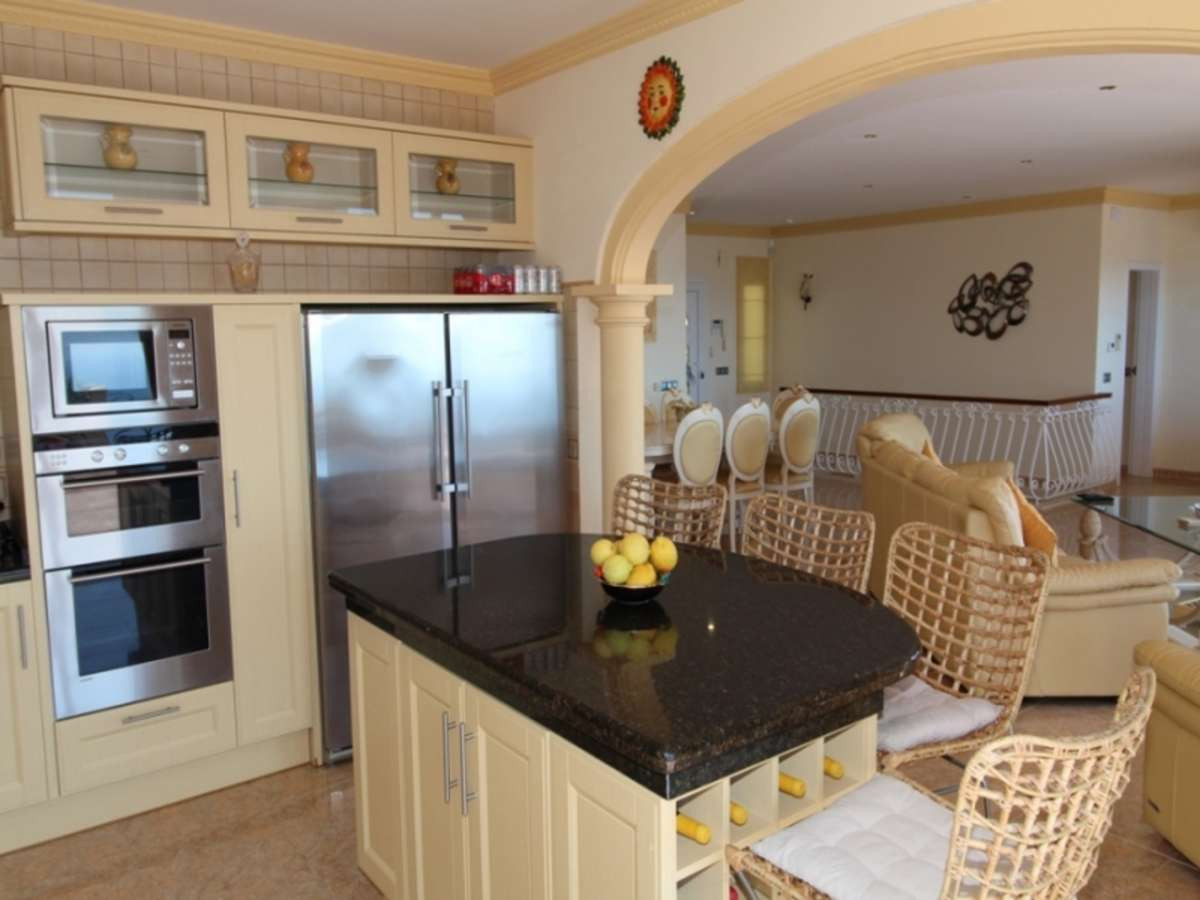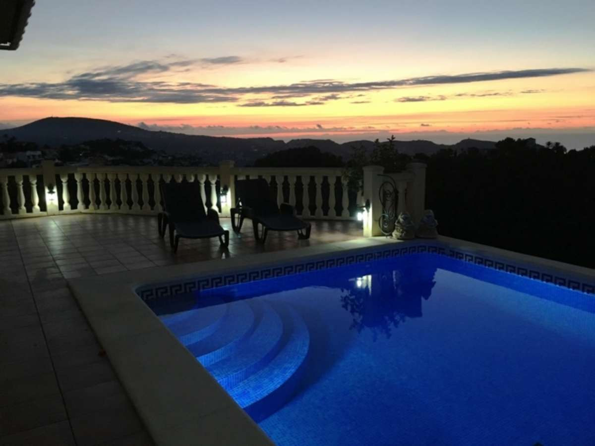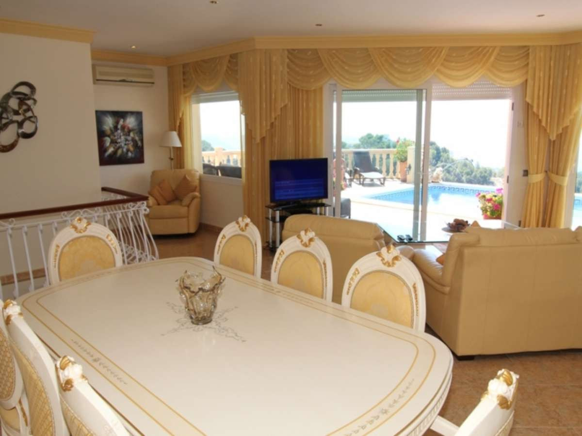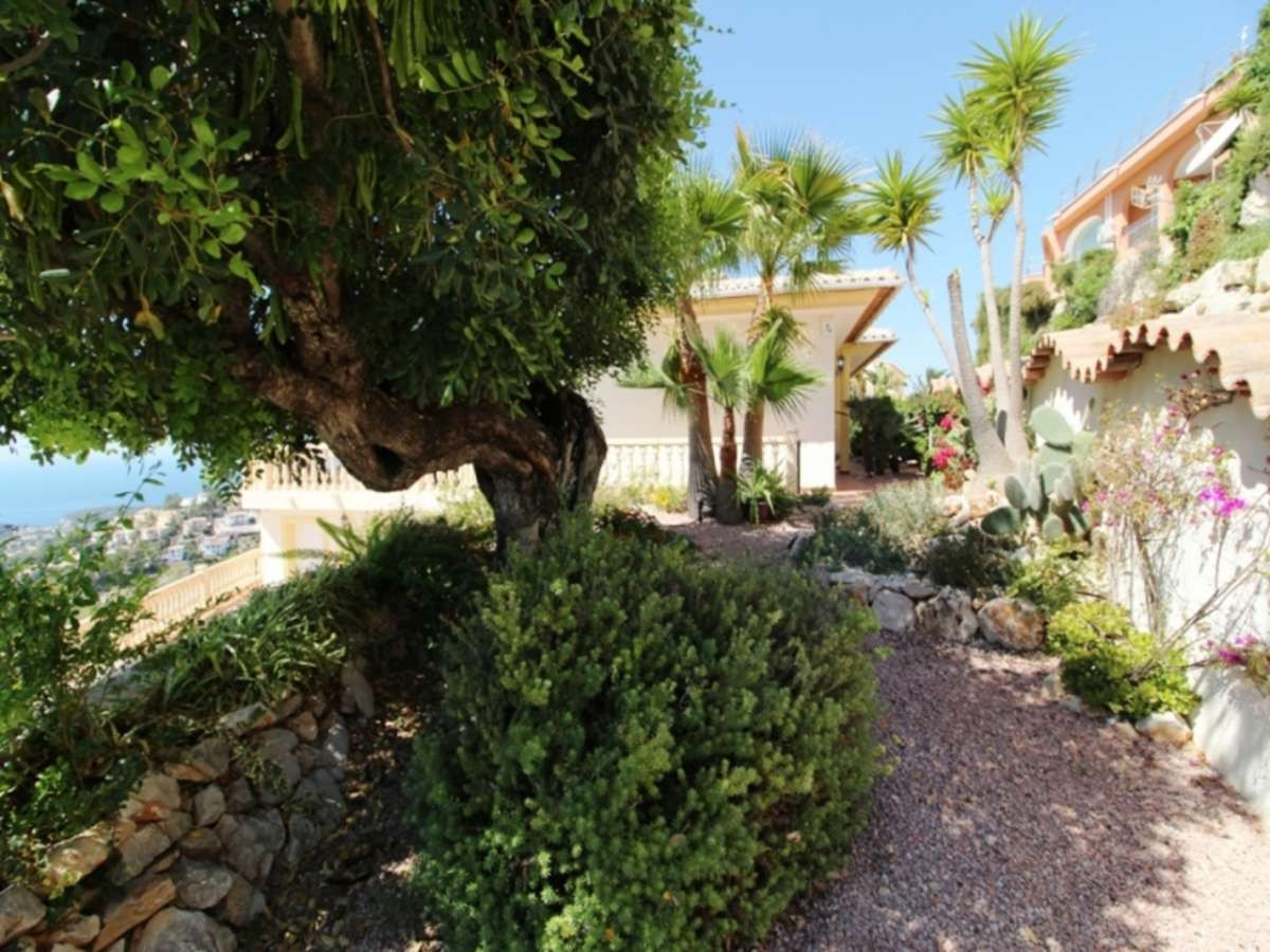 Panoramic Villa with stunning sea views for sale in Benimeit, 4.5km drive to the town of Teulada and 5km to the Blue flag sandy beaches of Moraira.Built-in 2004 comprises of one main level with spectacular views of the sea and Penon de Ifach. Entry via a driveway leading to the double garage. On the upper lane a Pedestrian gate to the main door or via the internal staircase from the garage. Entry via the main door into the spacious open plan Lounge and Dining area, with large sliding doors with views over the pool to the sea.Open plan kitchen with central Island and granite worktops, fully fitted with appliances, double oven and sliding doors to the pool terrace. Underfloor Central heating on this level together with Air conditioning in all bedrooms. The double glazing windows have electric blinds.Doors from the Kitchen and Lounge flow onto the newly laid terrace with non-slip natural stone tiles, designed to collect any surface water and diverts to a large water deposit and diverted and used in the garden via a timed irrigation system. Master bedroom with His amp; Hers fitted wardrobes in the walk-in closet area, sliding doors flowing out to the terrace. En-suite bathroom with corner bath and walk-in shower, double vanity unit, WC. Further two bedrooms with fitted wardrobes sharing a shower room.Internal staircase to lower level with an independent 1 bedroom, sea view guest apartment with en-suite shower room, full kitchen access from the garage or independent front door.Outside on the 785m2 plot, the terrace has an open Naya, 8 x 4m2 infinity swimming pool, Portable BBQ area and a shady Gazebo. Established and manageable garden with flower, Mediterranean plants and fruit trees. There is also a lower terrace leading from the guest apartment.Extras include a high-tech video surveillance system with cameras that can be accessed via your mobile device anywhere in the world. Wall mounted solar heating system for hot water and heating the pool, New water pressure of 4 ¼ bar, new costs effective heating system, cutting yearly flue bills. Wifi throughout the property.~