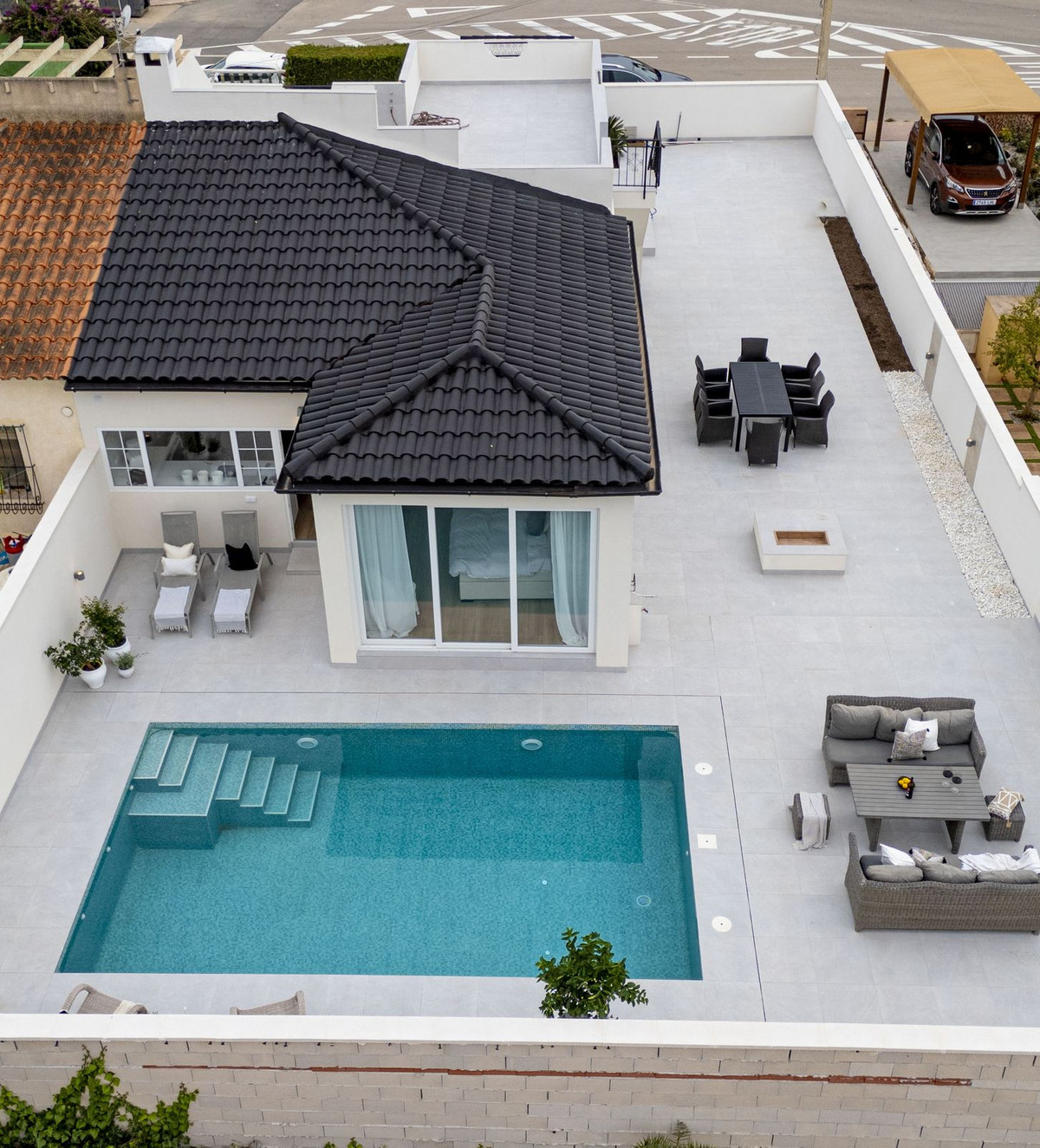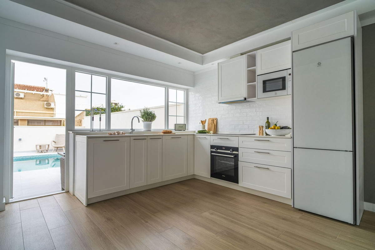 Welcome to this fantastic, fully renovated single-story villa ? a dream home for those in search of a modern and elegant residence! Here, sophisticated design and carefully crafted details come together to create a warm and inviting atmosphere. The villa features light colors throughout and large windows that allow for an abundance of natural light, bringing a sense of spaciousness and harmony to the entire home.This spacious villa offers three large bedrooms and two newly renovated bathrooms, combining modern functionality with a touch of refined style. Here, thereapos;s room for both relaxing showers and quick morning routines, all with a high standard of quality and carefully selected materials.The outdoor space is a true oasis, with a large pool that becomes a natural gathering spot on sunny days. Imagine enjoying peaceful swims or perhaps a fun pool day with family and friends ? this is the perfect place for relaxation and socializing!From the rooftop terrace, you can also enjoy fantastic views of the area and soak up the sun all day. The terrace offers endless possibilities: decorate it with lounge furniture for lovely barbecue nights, create a green oasis with plants and flowers, or set up a cozy corner for your morning coffee. Here, you can truly embrace outdoor living!This villa offers everything you need to create a home that feels like a true retreat. Youapos;ll find modern style, light colors, and generous social spaces, both indoors and out. Welcome to your new dream home, where every day feels like a holiday!~