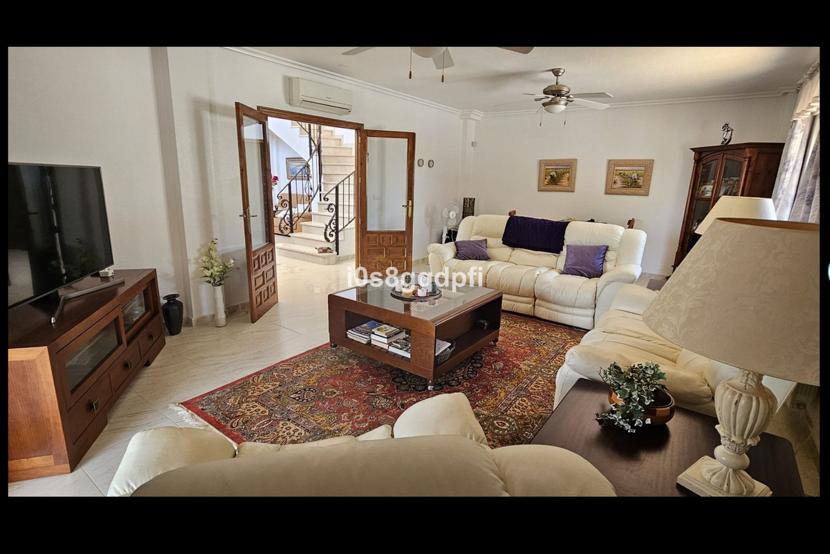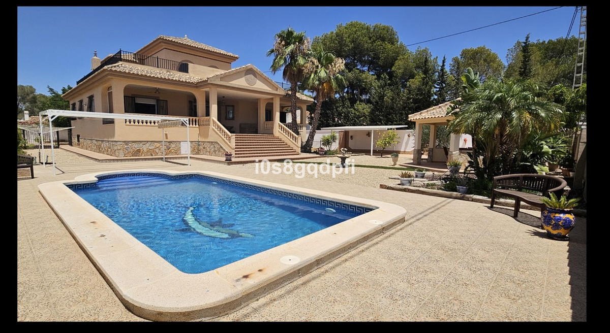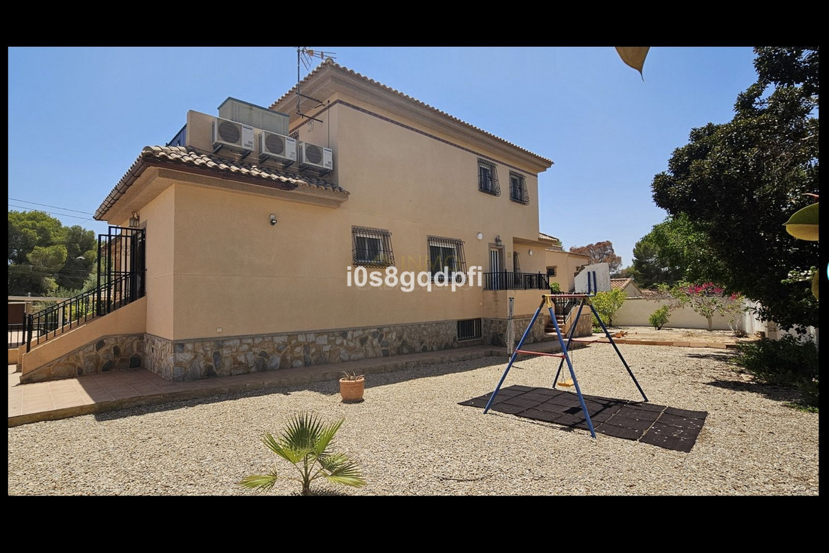 This stunning property is ideal for those who appreciate open views, nature walks, and the tranquility of the outdoors. Situated in Pinar de Campoverde, the house offers all the high-end features youapos;d expect, including a private pool, air conditioning, and oil central heating.Main FloorAs you enter, you are greeted by a spacious hall with stairs leading to the first floor, along with a guest toilet and a small storage room. To the right, there is a large living room with access to a covered terrace. On the left, the hall leads to a dining room, also with terrace access, a small office, and a large kitchen featuring an island and top-quality appliances. Adjacent to the kitchen is a utility room with a separate entrance from the rear of the house. The kitchen also connects to a hallway that leads to the basement and sleeping quarters.From the entrance hall, a separate door leads to a corridor with access to two bedrooms, each with fitted wardrobes, a shared bathroom, and stairs leading down to the basement/garage.Basement/GarageDescending the stairs from the hallway, youapos;ll find two additional bedrooms with fitted wardrobes, another bathroom, and the garage, which has space for two vehicles. The garage also houses two rooms for the oil central heating boilers.First FloorThe master bedroom is located on the first floor, with access to a large terrace offering spectacular open views?ideal for sunbathing or relaxing. The bedroom also includes a spacious dressing room and a luxurious bathroom, complete with a shower and jacuzzi tub.DetailsIBI (SUMA): ?1,580/year (house) + ?25/year (car entrance).Area InformationPinar de Campoverde, located 160 meters above sea level, is a thriving community within the municipality of Pilar de la Horadada, which has around 23,000 residents. The area boasts well-established infrastructure with numerous bars, restaurants, a medical center, and a police station. It also features beautiful natural parks, such as the famous Seco riverbed, a scenic walk of 1-2 hours leading to Mil Palmeras, where you can enjoy a refreshing swim in the Mediterranean Sea.The Lo Romero Golf Course is just a couple of kilometers away, and there are around 30 more golf courses within a 45-minute drive. Torre de la Horadada, known for its 10 Blue Flag beaches, is only 10-12 km away. If you prefer public transportation, regular bus services are available.This area is perfect for outdoor enthusiasts, offering scenic hiking trails, tennis courts, and proximity to golf courses.~