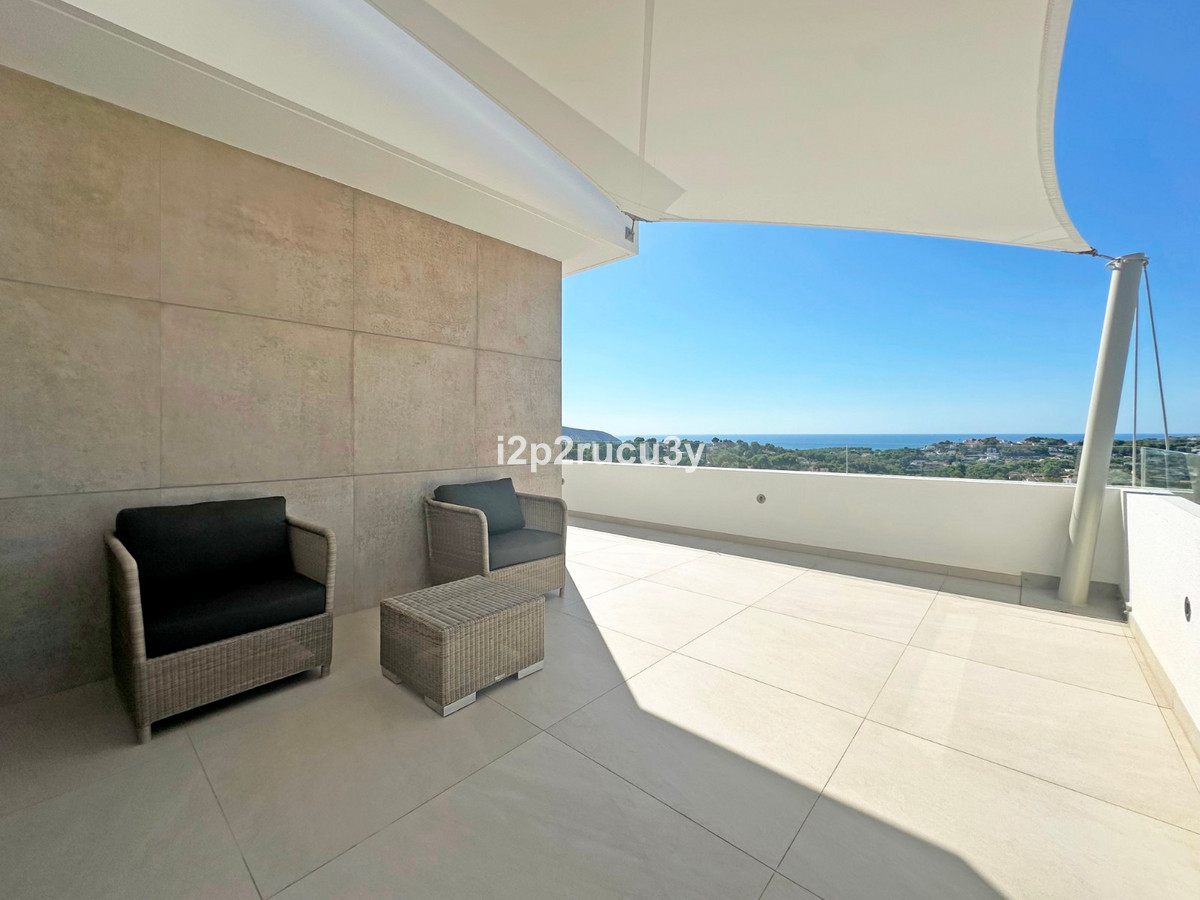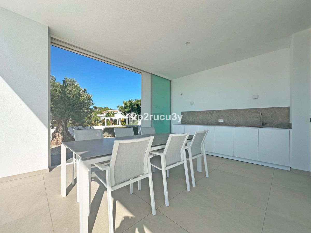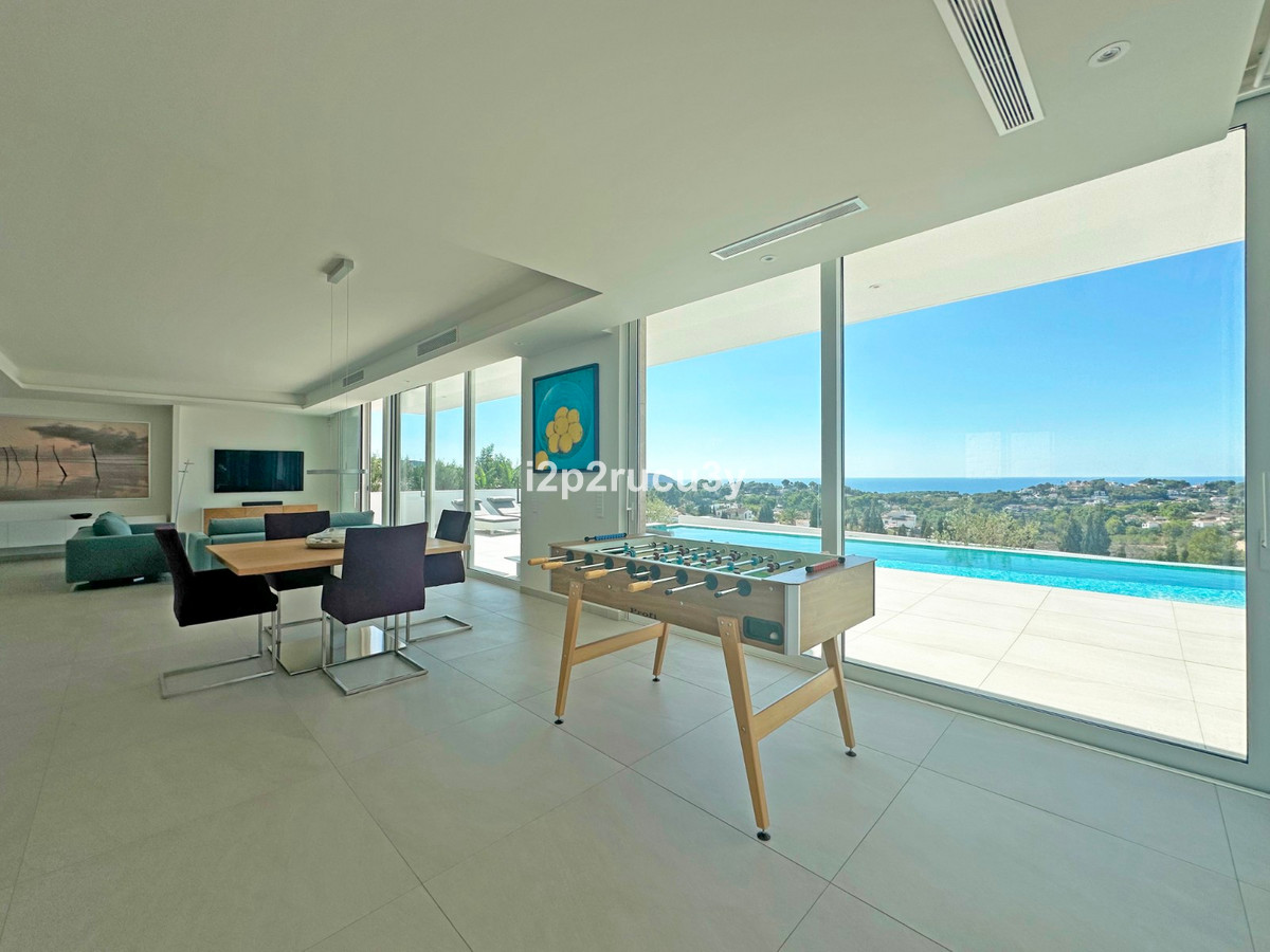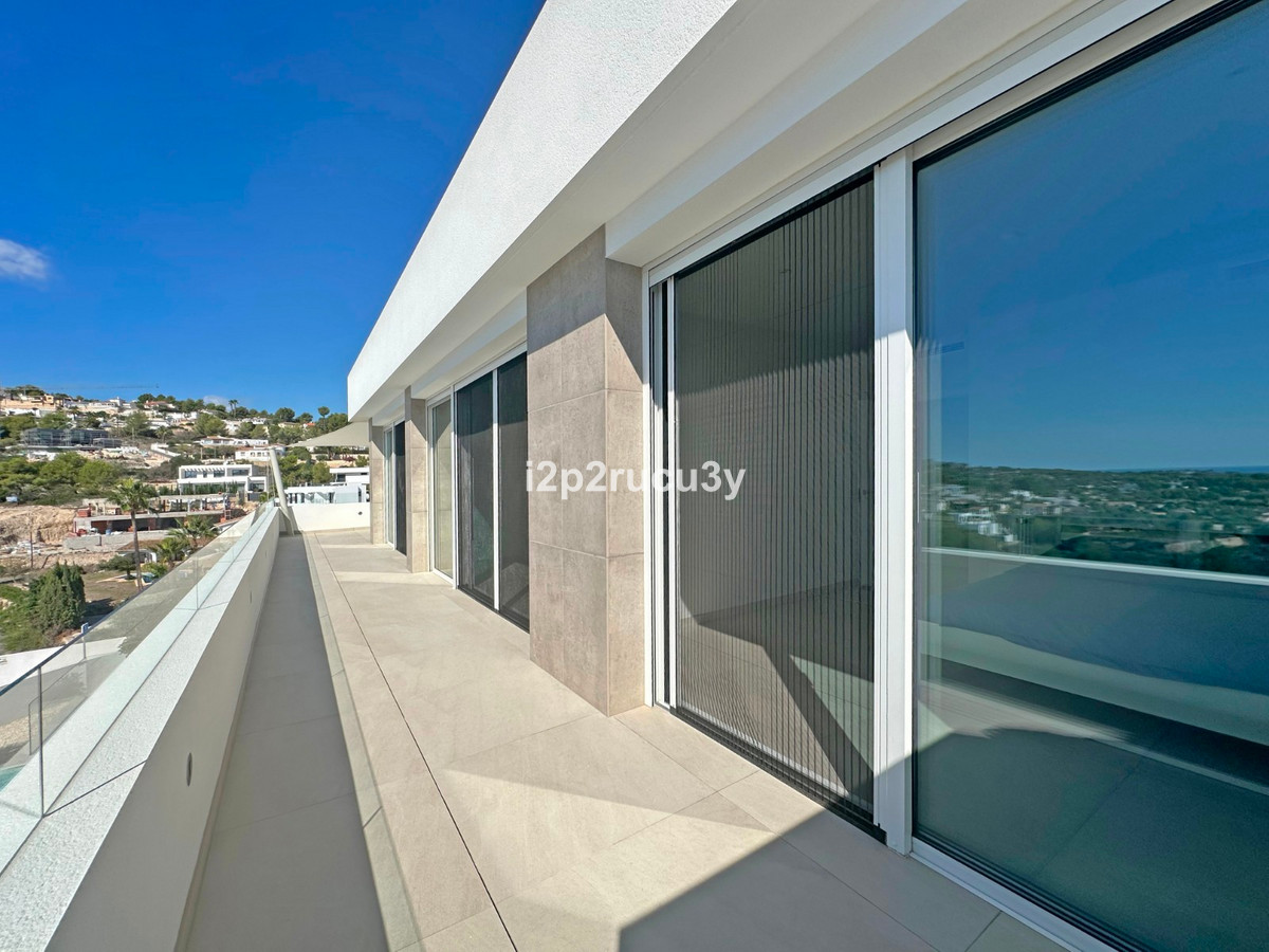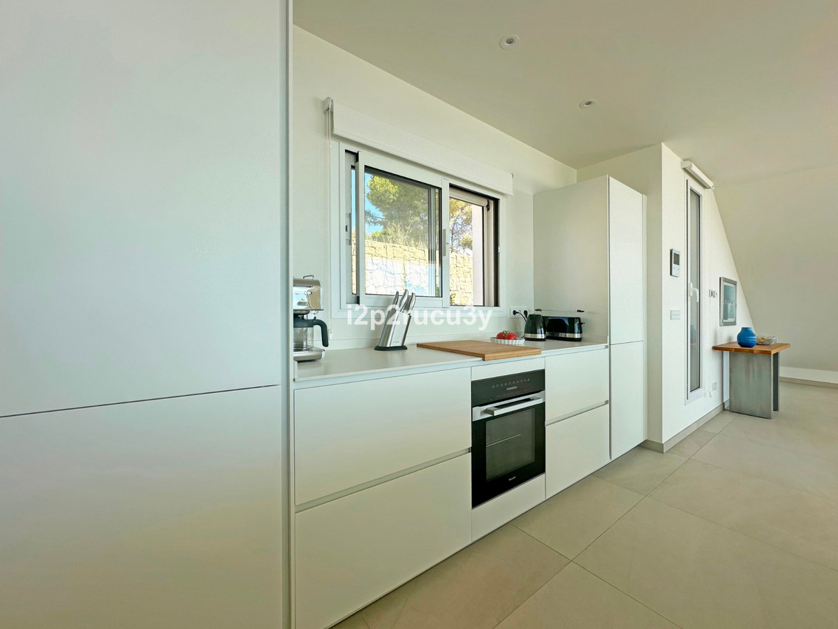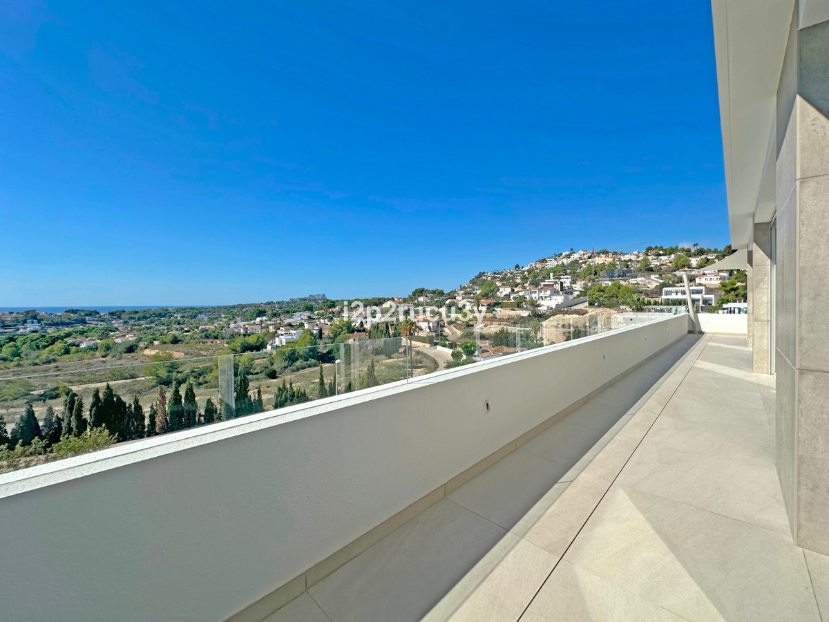 Discover this modern villa in the best location of Moraira -amp;nbsp; Benimeit with a stunning sea view.amp;nbsp;This property, built in 2021, is equipped with the latest technologies and high-quality finishes for maximum comfort.amp;amp;Upon entering, you are welcomed by an elegant entrance with built-in wardrobes and a living-dining room of approximately 80 m² with an open kitchen and central island. Next to the kitchen, there is a practical storage and pantry area.amp;amp;The large windows on the ground floor offer panoramic sea views and direct access to the pool, terrace, and outdoor shower.amp;amp;From the dining room, you access the covered outdoor kitchen and the outdoor dining area, which can be closed on the west side with glass curtains.amp;amp;On this floor, there is also a modern bathroom with a spacious walk-in shower.amp;amp;Upstairs, there are three bedrooms and an additional bathroom with both a shower and a bathtub, from which you can enjoy sea views even while showering or bathing.amp;amp;All rooms have access to the southwest-facing terrace, where you can relax under the installed sunshade and enjoy an expansive view of the sea and surrounding landscape. A second terrace of approximately 40 m² is located to the southeast.amp;amp;Additional features of the villa:amp;amp;Spacious garage (8m x 5m) with a clearance height of 3.10 m, ideal for motorhome owners.Underfloor heating with a heat pump, air conditioning (hot and cold), and 20 solar panels with a capacity of 13,856 KWH (EPC A).Pool with automatic cover and solar panels.Three-phase electricity available and a 6000-liter rainwater tank.All windows and terrace doors that can be opened are equipped with mosquito screens; all window surfaces have interior blinds, along with automatic shutters in the bedrooms.Four automatic awnings for additional shade on the pool terrace.Comprehensive alarm system for both interior and exterior.Garden with automatic irrigation.amp;amp;This villa is built with high-quality materials and offers everything discerning buyers are looking for: quality, tranquility, and spectacular views. Donapos;t miss this unique opportunity and schedule a visit today!~