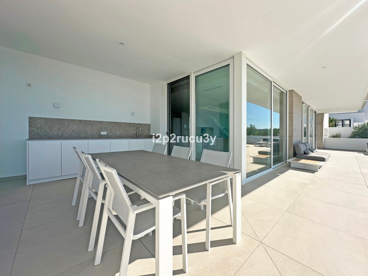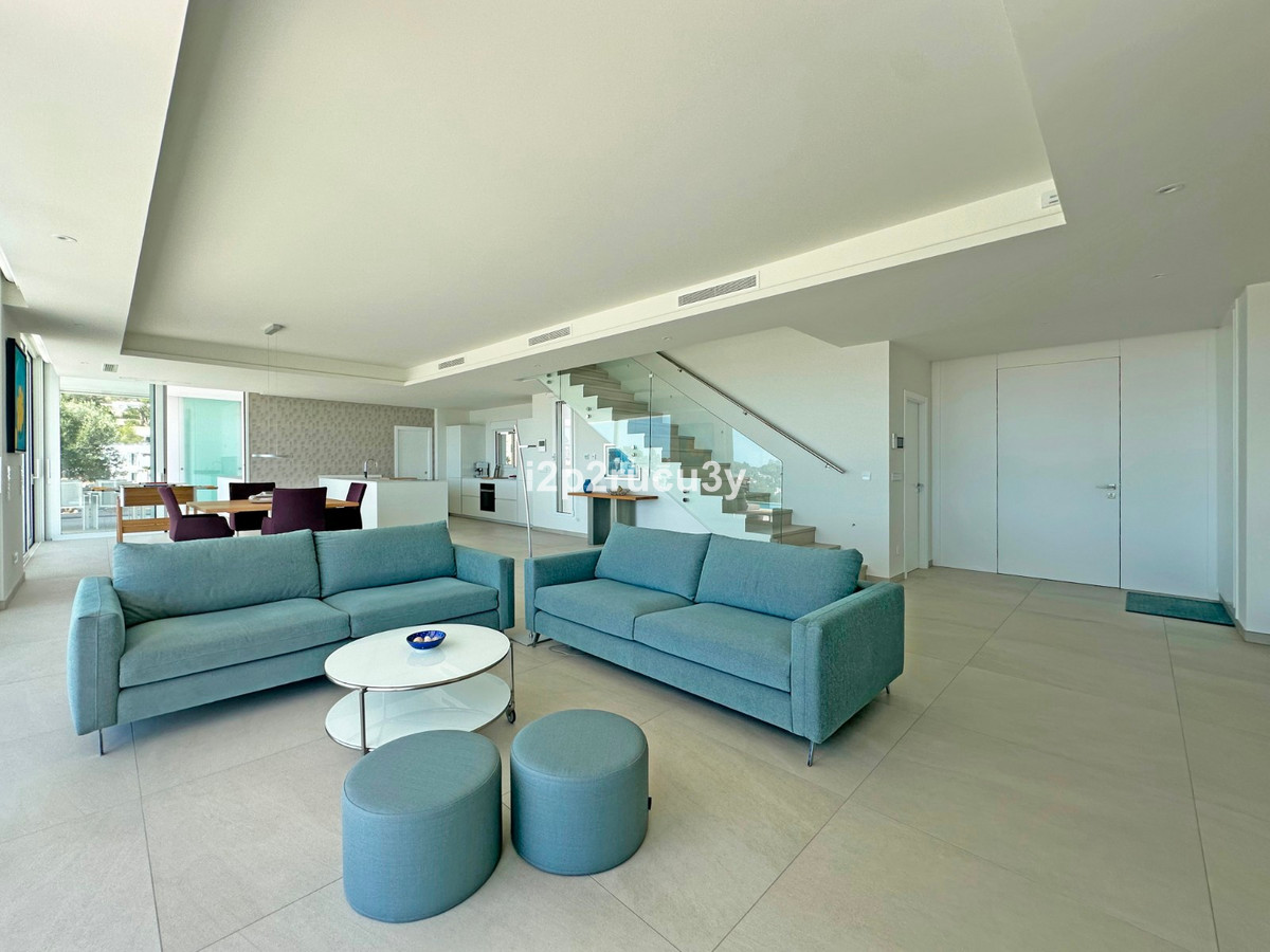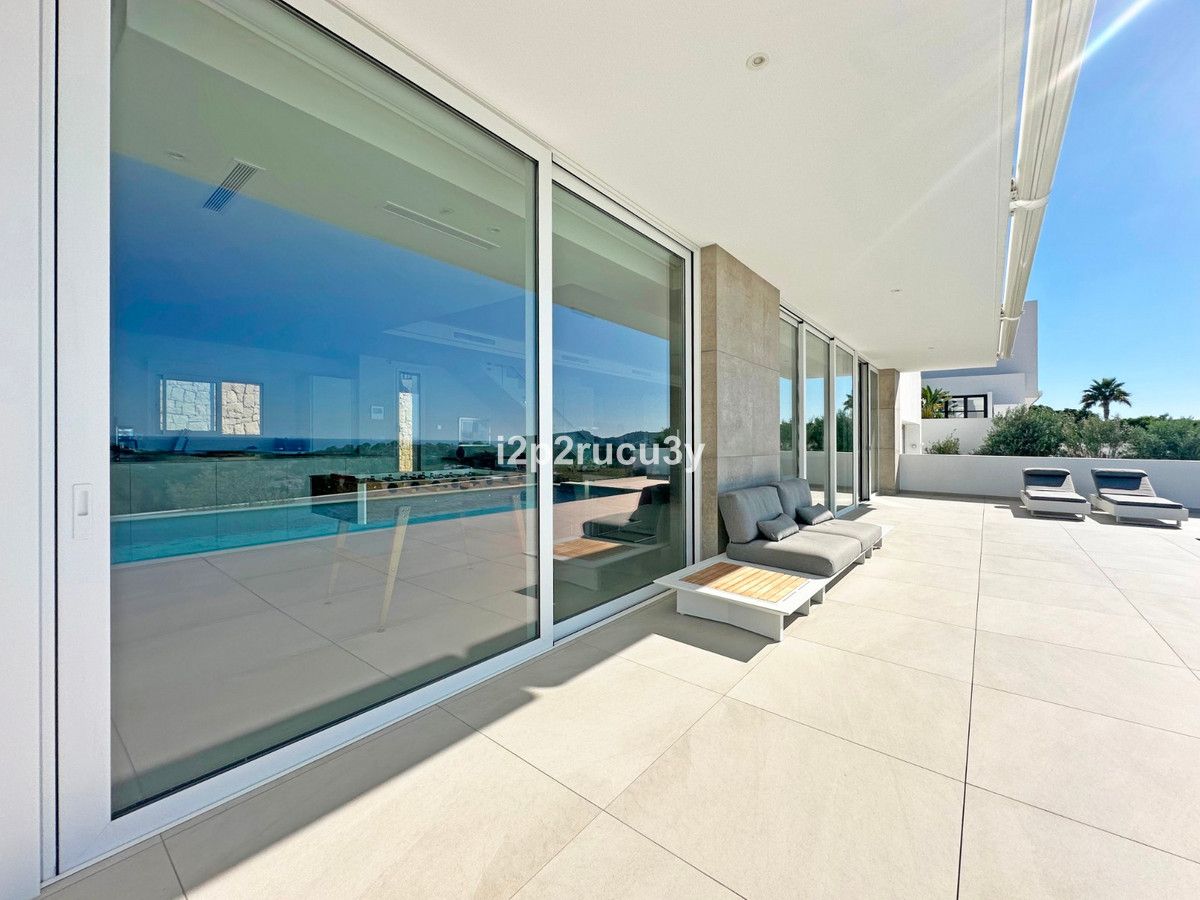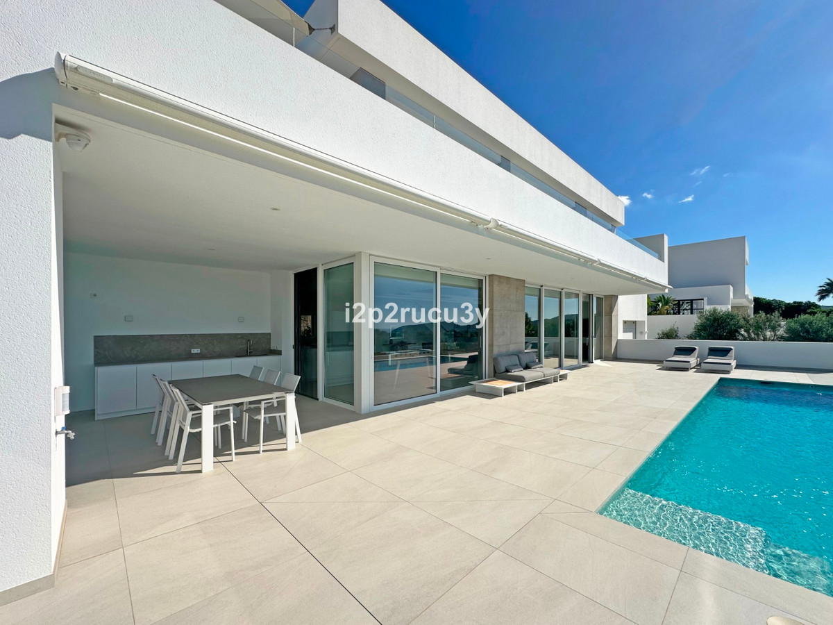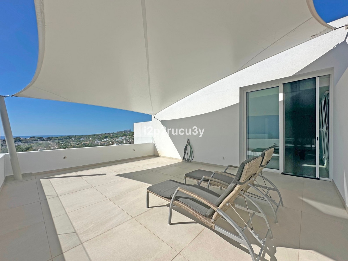 Discover this modern villa in the best location of Moraira -amp;nbsp; Benimeit with a stunning sea view.amp;nbsp;This property, built in 2021, is equipped with the latest technologies and high-quality finishes for maximum comfort.amp;amp;Upon entering, you are welcomed by an elegant entrance with built-in wardrobes and a living-dining room of approximately 80 m² with an open kitchen and central island. Next to the kitchen, there is a practical storage and pantry area.amp;amp;The large windows on the ground floor offer panoramic sea views and direct access to the pool, terrace, and outdoor shower.amp;amp;From the dining room, you access the covered outdoor kitchen and the outdoor dining area, which can be closed on the west side with glass curtains.amp;amp;On this floor, there is also a modern bathroom with a spacious walk-in shower.amp;amp;Upstairs, there are three bedrooms and an additional bathroom with both a shower and a bathtub, from which you can enjoy sea views even while showering or bathing.amp;amp;All rooms have access to the southwest-facing terrace, where you can relax under the installed sunshade and enjoy an expansive view of the sea and surrounding landscape. A second terrace of approximately 40 m² is located to the southeast.amp;amp;Additional features of the villa:amp;amp;Spacious garage (8m x 5m) with a clearance height of 3.10 m, ideal for motorhome owners.Underfloor heating with a heat pump, air conditioning (hot and cold), and 20 solar panels with a capacity of 13,856 KWH (EPC A).Pool with automatic cover and solar panels.Three-phase electricity available and a 6000-liter rainwater tank.All windows and terrace doors that can be opened are equipped with mosquito screens; all window surfaces have interior blinds, along with automatic shutters in the bedrooms.Four automatic awnings for additional shade on the pool terrace.Comprehensive alarm system for both interior and exterior.Garden with automatic irrigation.amp;amp;This villa is built with high-quality materials and offers everything discerning buyers are looking for: quality, tranquility, and spectacular views. Donapos;t miss this unique opportunity and schedule a visit today!~
