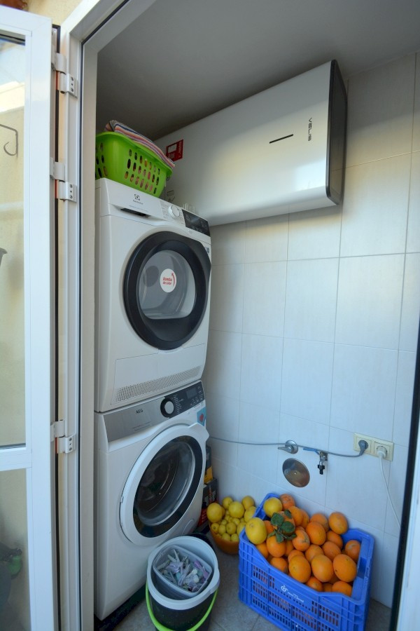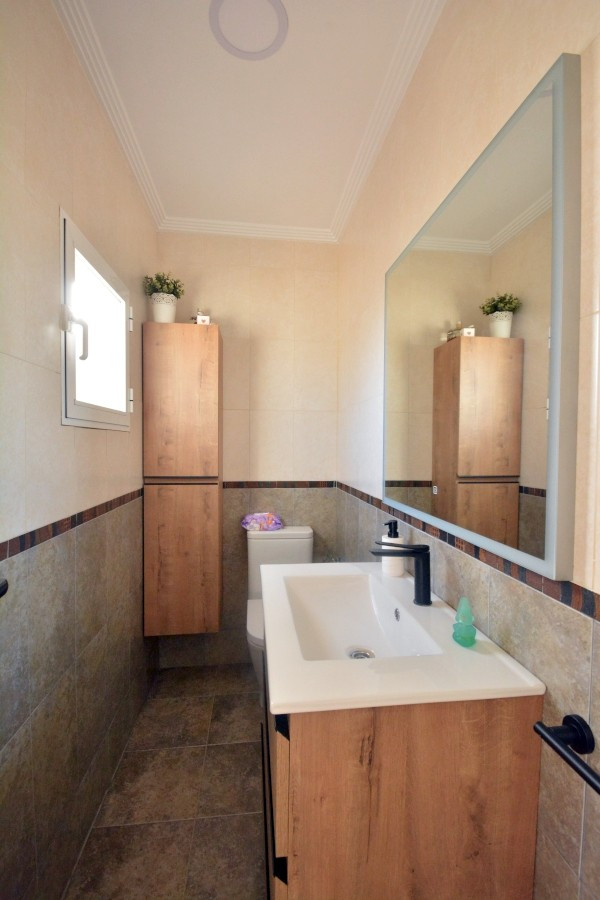 Located in the Los Secanos area of Guardamar del Segura, this fully renovated townhouse offers an ideal blend of modern comfort and coastal charm, just 700 meters from the beach. Guardamar del Segura, a picturesque town on Spainapos;s Costa Blanca, is celebrated for its pristine beaches, verdant pine forests, and vibrant Mediterranean lifestyle.amp;amp;The property spans 90 square meters across three thoughtfully designed levels. The ground floor features a bright living room, a guest toilet, and a separate kitchen that opens to a spacious back patio with a laundry area and barbecue, perfect for outdoor entertaining. At the front of the house, a semi-covered porch with a bioclimatic awning provides a serene spot to enjoy sea views.amp;amp;The first floor comprises two cozy bedrooms and a shared bathroom, while the second floor includes an additional bedroom with its own bathroom and access to a sun-soaked terrace boasting panoramic sea views. The townhouse also benefits from direct access to a private basement, which includes a large storage room. This space leads to a communal parking garage, where the property offers two parking spaces?one enclosed for storage and another open.amp;amp;Renovations throughout the home include a sleek, modern kitchen with premium appliances, updated bathrooms, new windows and doors, and a state-of-the-art air conditioning system. Most furniture and electrical appliances are included in the sale, making the home move-in ready.amp;amp;Taxes and purchase expenses are not included in the listed price.~