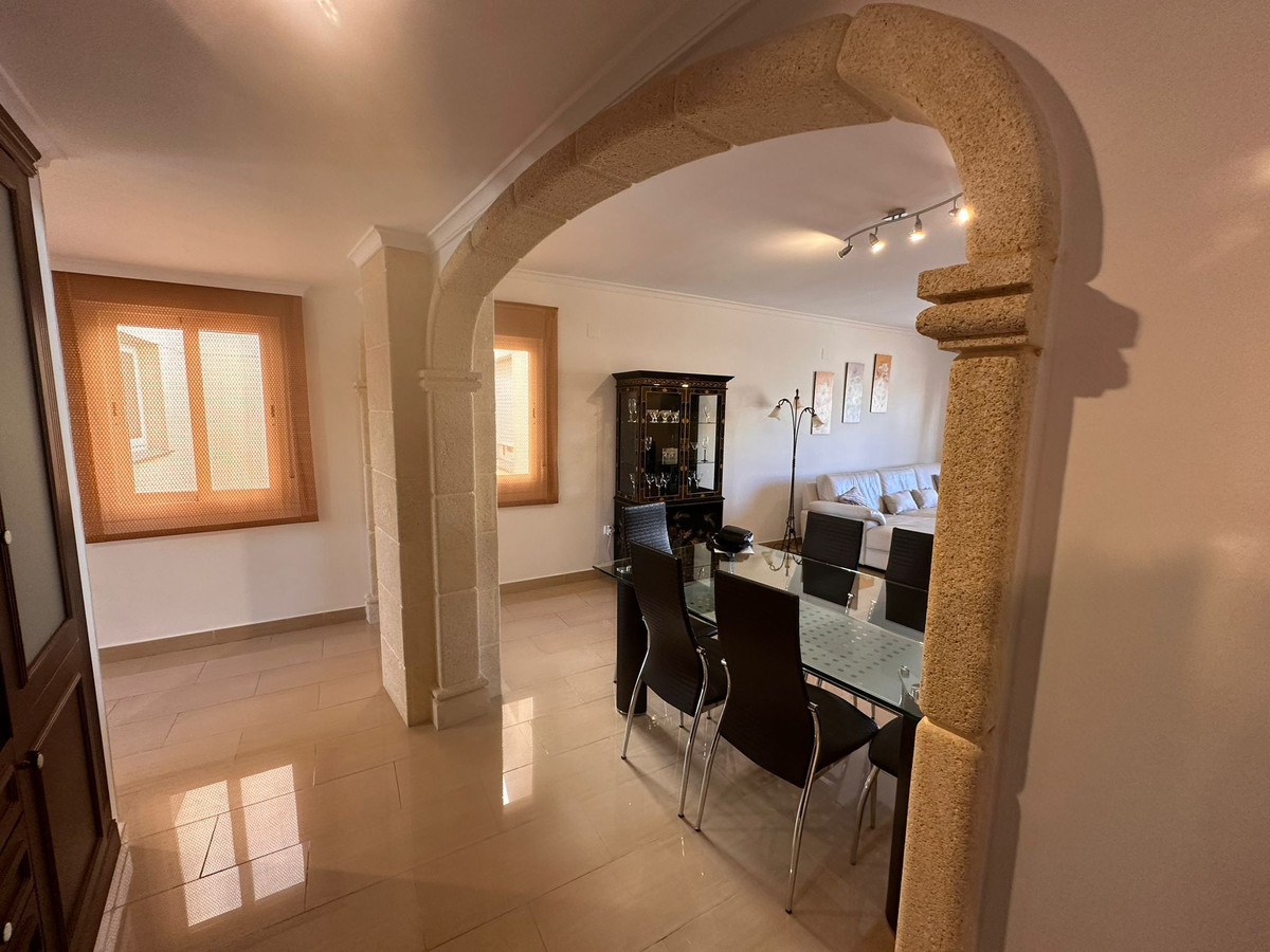 Apartment/ flat for sale in Teulada, a few minutes drive to Moraira and beachNestled in the heart of Teulada, this exquisite top-floor apartment offers unparalleled convenience and elegance. Located just a five-minute drive from the beautiful coastal town of Moraira, this property boasts three spacious bedrooms, including a master suite with an ensuite bathroom. The second bathroom is equally well-appointed to serve the additional bedrooms. The apartmentapos;s interior is tastefully decorated, featuring a stunning stone archway and pristine marble flooring throughout. This property also includes access to the roof terrace, where you can enjoy breathtaking sea views.The building comprises three levels and this apartment sits on the top floor, ensuring privacy and tranquility. Additionally, the property comes fully furnished. A dedicated parking space is also included.~