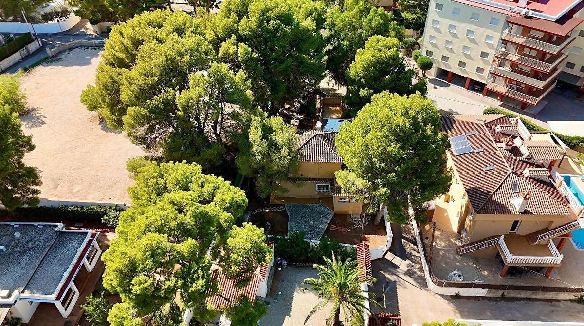 Detached villa with a beautiful garden next to the sea in Las Rotas, Denia, only 100 metres from the cozy beaches and with a perfect southeast orientation.This property has been kept in excellent condition thanks to the fact that it has had only one owner. Its functional and cosy distribution is organised on two floors and a basement.On the main floor, upon entering, we are welcomed by a spacious and bright hall that leads to an elegant living-dining room with fireplace, ideal for relaxing, with direct access to a covered terrace from which you can enjoy the views to the garden. The independent large kitchen has a window to living area and it has a separate laundry room. Furthermore, this floor houses two large bedrooms and a complete bathroom.The first floor is a private retreat where is the master bedroom with an en suite bathroom and access to two terraces offering sea and mountain views.The basement has a large storage room and a garage with capacity for 3-4 vehicles, with direct access to the property, offering comfort and security.Additional features of this property include air conditioning and fitted wardrobes in all bedrooms.Its privileged location, just 100 metres from the beaches and surrounded by a wide range of restaurants and bars on the seafront, makes this villa the perfect choice for those looking for peace and quiet with all the comforts.~