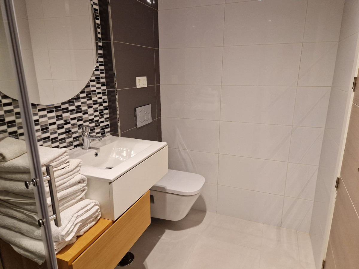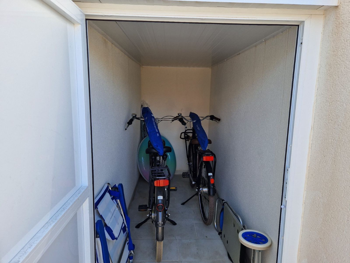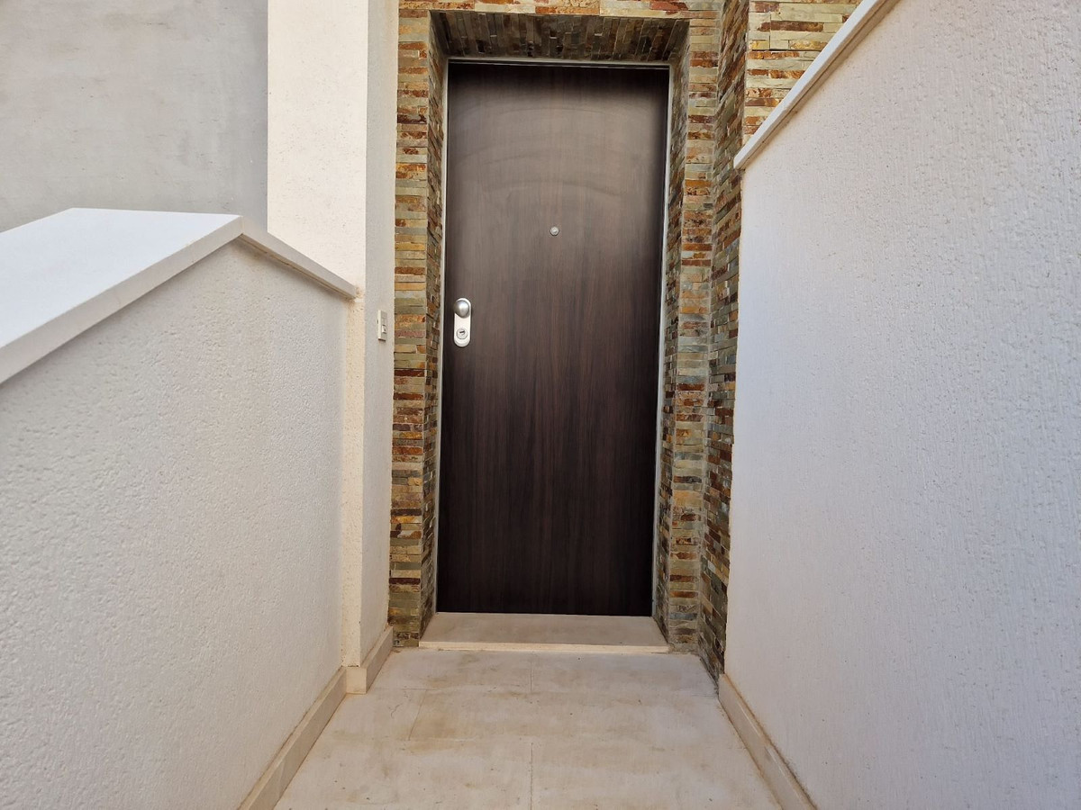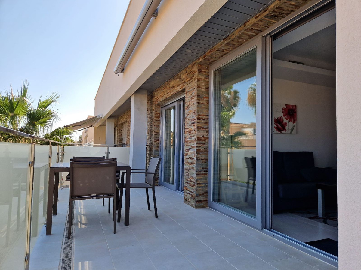 Come and view this lovely sunny property in a very relaxing area near the pink salt lake.The house, built in 2018, contains a spacious living room with adjoining open kitchen, two spacious double bedrooms and two full bathrooms. From the living room and one of the bedrooms you can walk onto the spacious balcony, from there you can go to the very spacious and sunny solarium, with a size of almost 70m2.The solarium has a canopy, a kitchen and a barbecue and a utility room. The house also has an underground parking space and a shed for bicycles.~